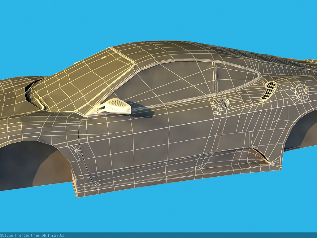 Sobre la topología, estoy intentando buscar por Google y en este mismo foro información al respecto, y supongo que, con la práctica y los años conseguiré que me queden mallas más bonitas y eficientes con menos polígonos, de momento esto es lo mejor que se hacer, y no sé cuántos polígonos se deben usar para hacer un coche en 3d, pero en este caso la cosa se elevo a 700.000.