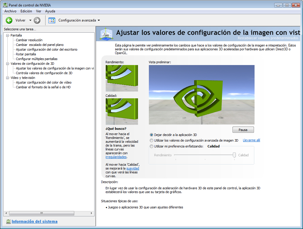 Efectivamente, solo en la interfaz del 3d (3ds Max, Blender, XSI) y cuando abro fotografías. Una pregunta más ¿cómo configuro el OpenGL o el DirectX? Lo unicio que puedo hacer es escribir en inicio>ejecutar dxdiag pero ahí no configuro nada.