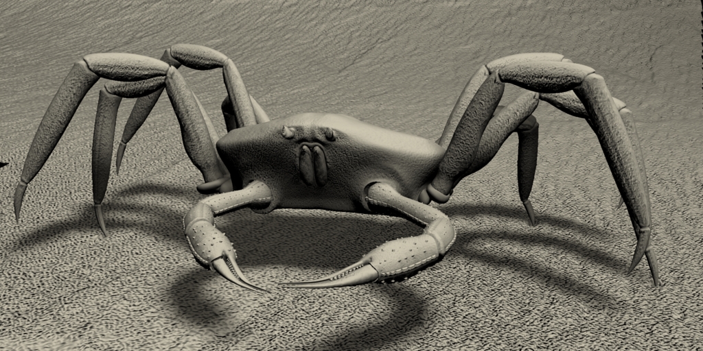 Buen modelado, pero para la integración hunde un poco las patas, que es arena y ahora mismo da la sensación de que está sobrepuesto. Y unas marcas en la arena tampoco le vendrían mal. Un saludo y ánimo.