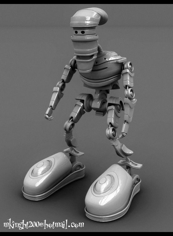 Hola, os dejo un robot que he modelado, una escena con él, y unas cuantas pruebas. A ver qué os parece.