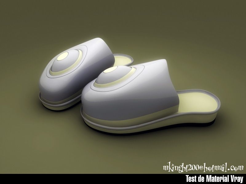Ballo, Cristina, Endora, A78 mas que zapatos son zapatillas la idea era hacer un robot en zapatillas, os enseño un render en el que probaba materiales recién modeladas.