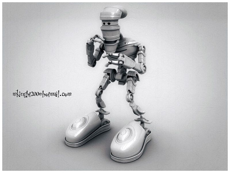 Muy bueno el robot, el acabado que más me gustó es el segundo, y lo veo para una animación tipo stop motion, ¿no? Abrazos.