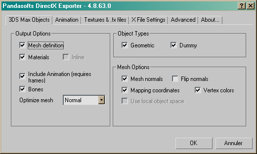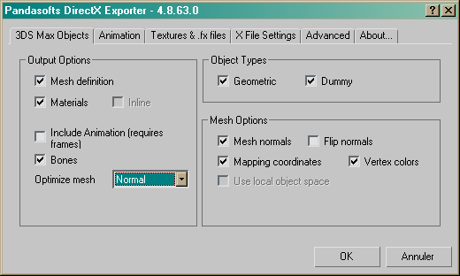 here a simple help page that explains how todo export in.x format with the pandasoft exporter.