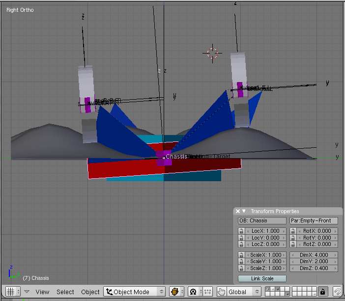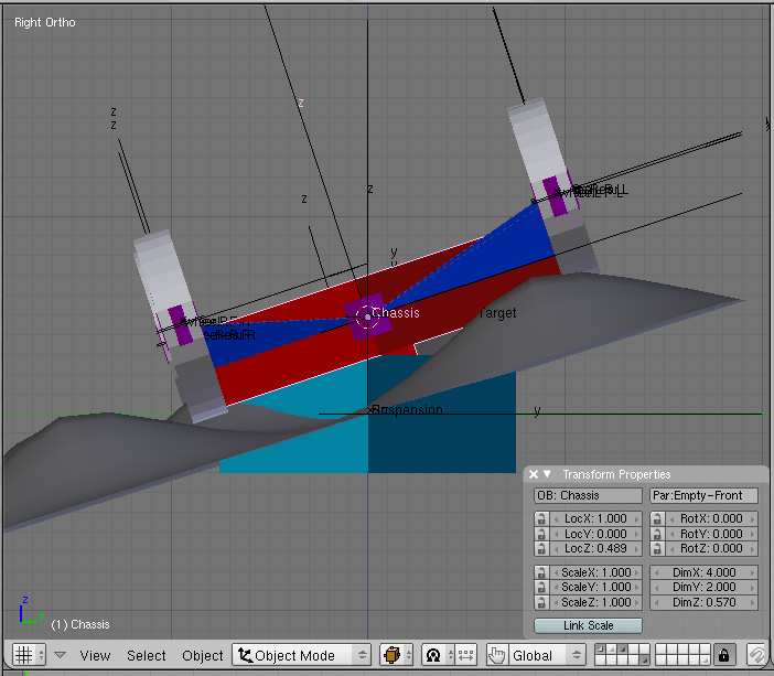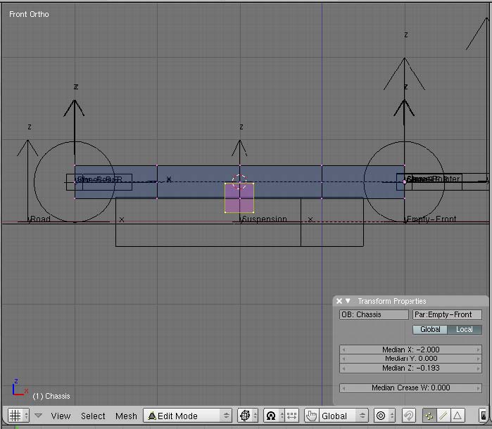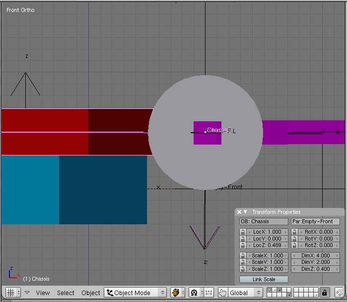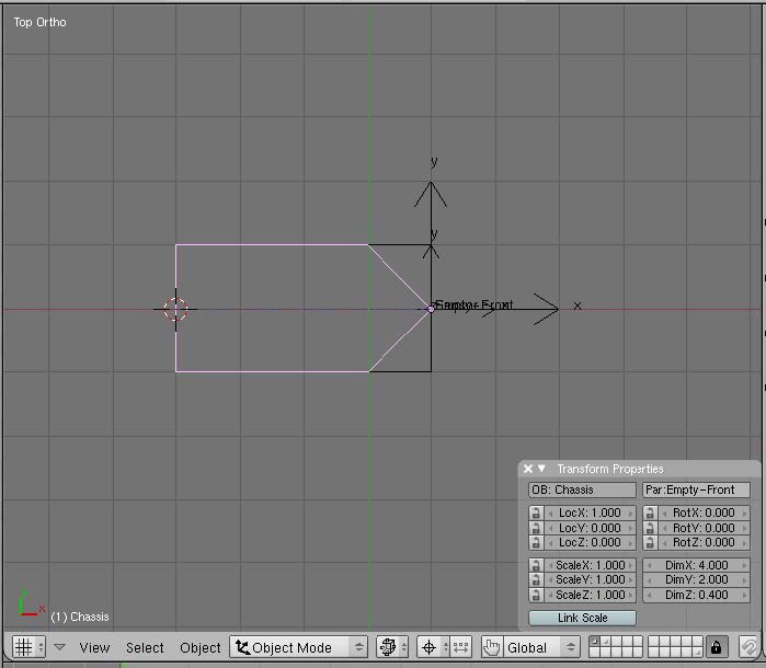 -Add an empty. Name it empty-front. And give it a size of 2 Blender units. -make the empty-front the parent of the chasis.