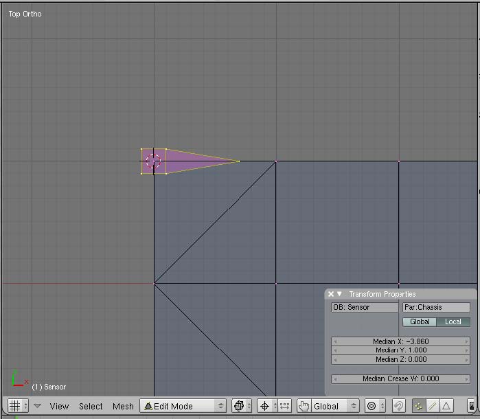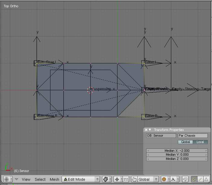 note : these two vértices are only useful if you create a car Rig that Will be used on a flat Ground. If you are going todo use the Rig on a bumpy Terrain, we Will use the corners of the sensor plane for the whels location.