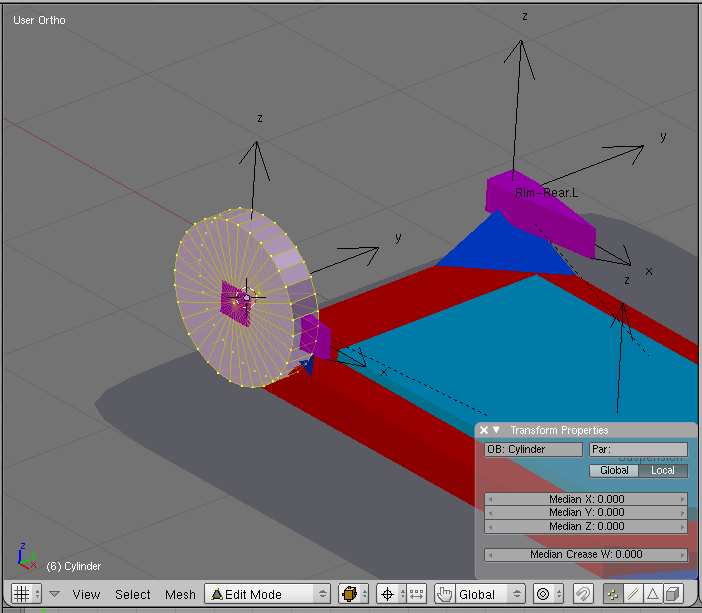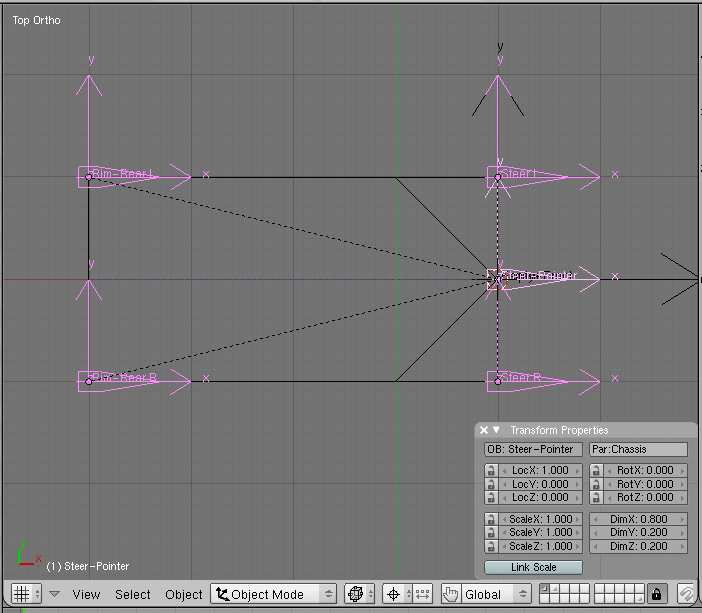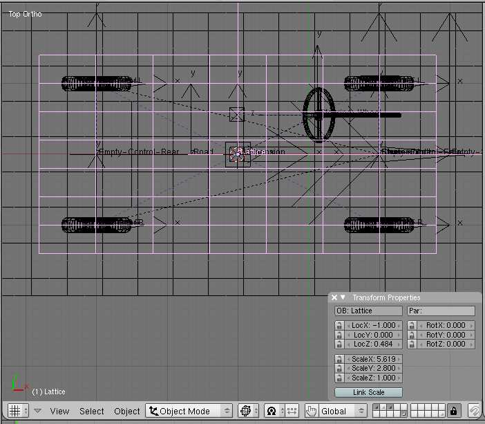 note : the rear whels are be parented todo the objects Rim-rear. R and Rim-rear. L, but they can a los be parented todo the object chasis, either directly todo the object itself or by vertex parenting, using vertex groups as reference.