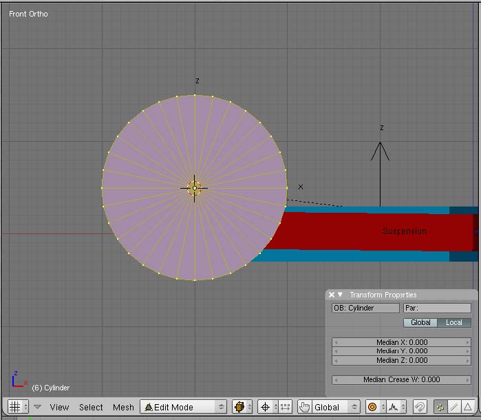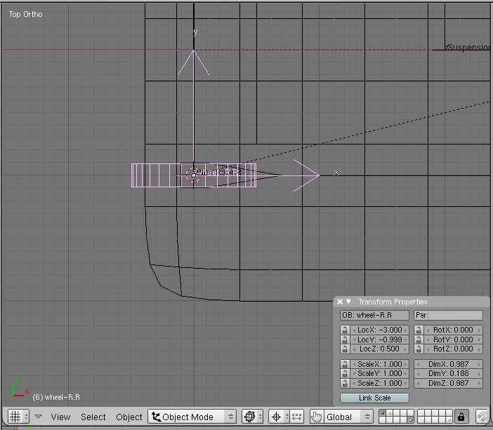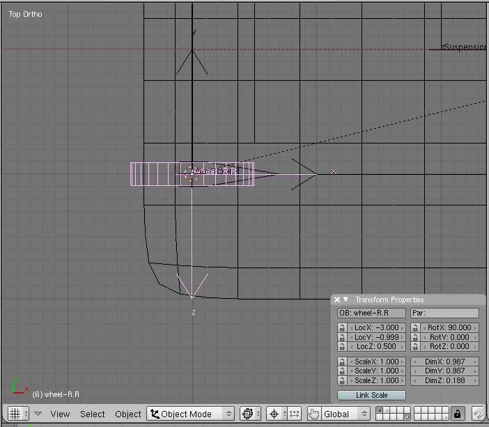 Now, the suspensión is centered between the whels location. Its center point Will be floating along the Zaxis.