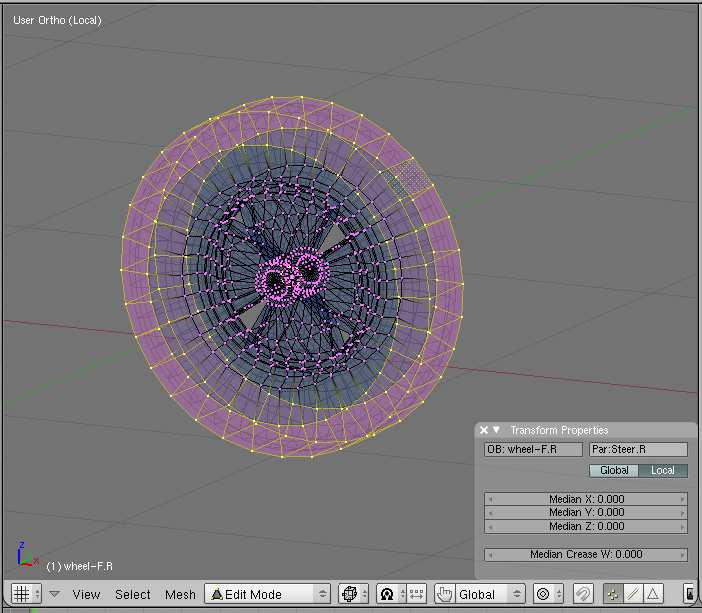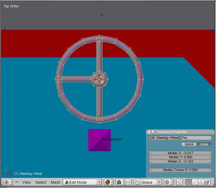 -Add a cylinder, extrude and scale it todo add the Alex of the stering-whel. When it is finished, you should have your stering-whel with its z axis vertical.