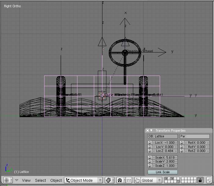 This Empty has a very important function. It is used todo control the stering. The object name ster-pointer is locked on the z axis tracking the empty-stering-target.
