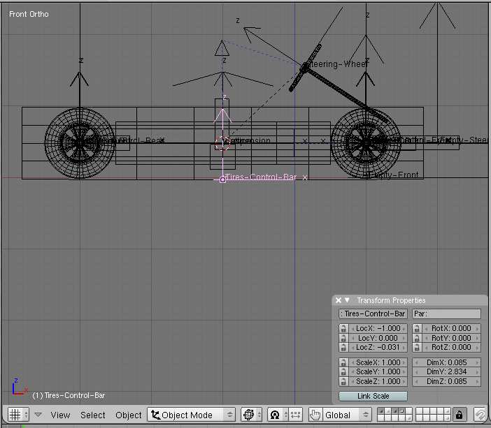 This can be easily done by adding two empties that we Will use as handles, todo ad secondary animation on the whels. In fact, we Will not directly ACT on the whels themselves, but rather on their supports. I mean on the objects ster. L, ster. R, Rim-rear. L and Rim-rear. R.