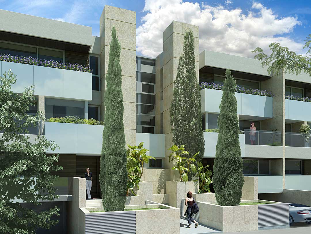 Los cipreses además de estar transparentes, típico que te piden para que se vea el edificio (cuando lo mejor sería en algunos casos esconderlos, pero no en este) tampoco hacen sombra, así que, definitivamente o fantasmas o vampiros.