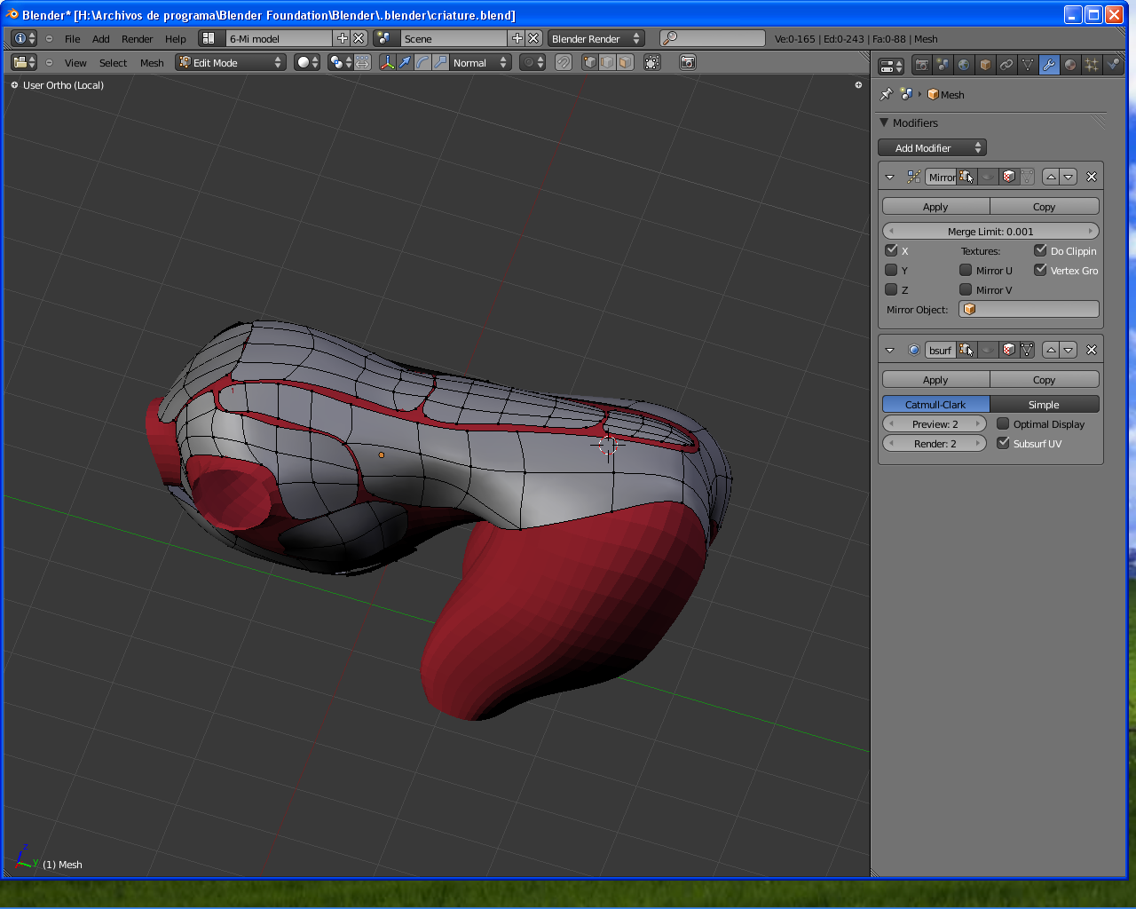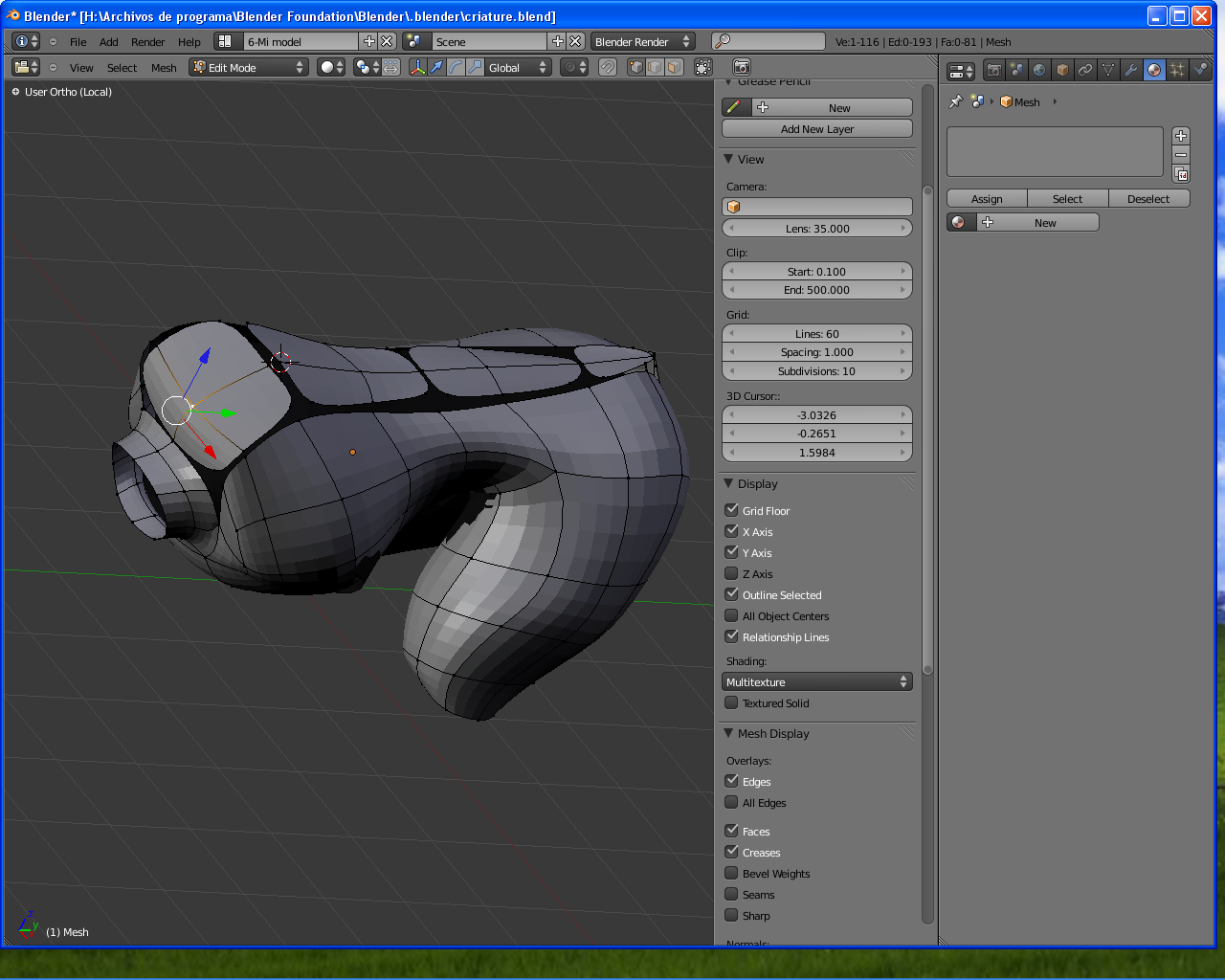 Como ya he dicho en algún mensaje, dedico cada día un rato a probar algunas compilaciones de Blender 2.5. Aunque ha día de hoy, casi trabajo más con estas que con la 2.49. Y nada mejor para probar que realizar algún proyecto. Había pensado usar algún.blend del Creature Factory, con el modelo ya un poco avanzado, (vienen los pasos del modelo del 1 al 130) pero, me he decidido a empezarlo de cero (quien dijo miedo?) y, en esas estoy. Iré subiendo aquí algún progreso para que opinéis y me metais en vereda si me voy por los cerros de Úbeda, y se acaba pareciendo más al monstruo de alien, que al creature original.