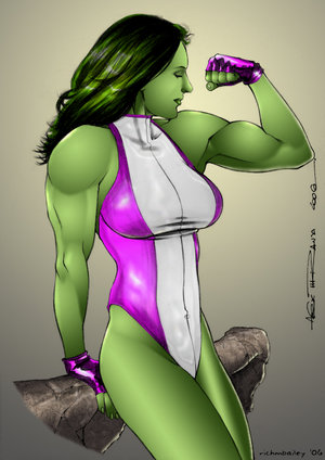 No me termina de convencer el cuerpo, en el sentido que si es la contraparte femenina de Hellboy debería ser mucho más fibra y muscular, análogamente hablando seria lo que es She-Hulk ha Hulk, el pelo también necesita algo de ayuda, quizás menos Kink y Frizz para que no se haga tan horquillado, pero resolvería primero lo de los músculos, piensa que es la versión femenina de Hellboy, no una modelo con un arma y una mano de piedra. Ánimo te adjunto algunas referencias como para que veas a que me refiero.
