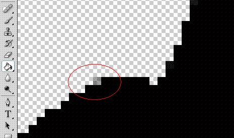 Hola metalfox6383, si deseas rellenar una selección de esa manera, en la barra de opciones de la herramienta sección (cual sea la que uses), le pones valor 0 al feather y le quitas el anti-alias.Cita:
