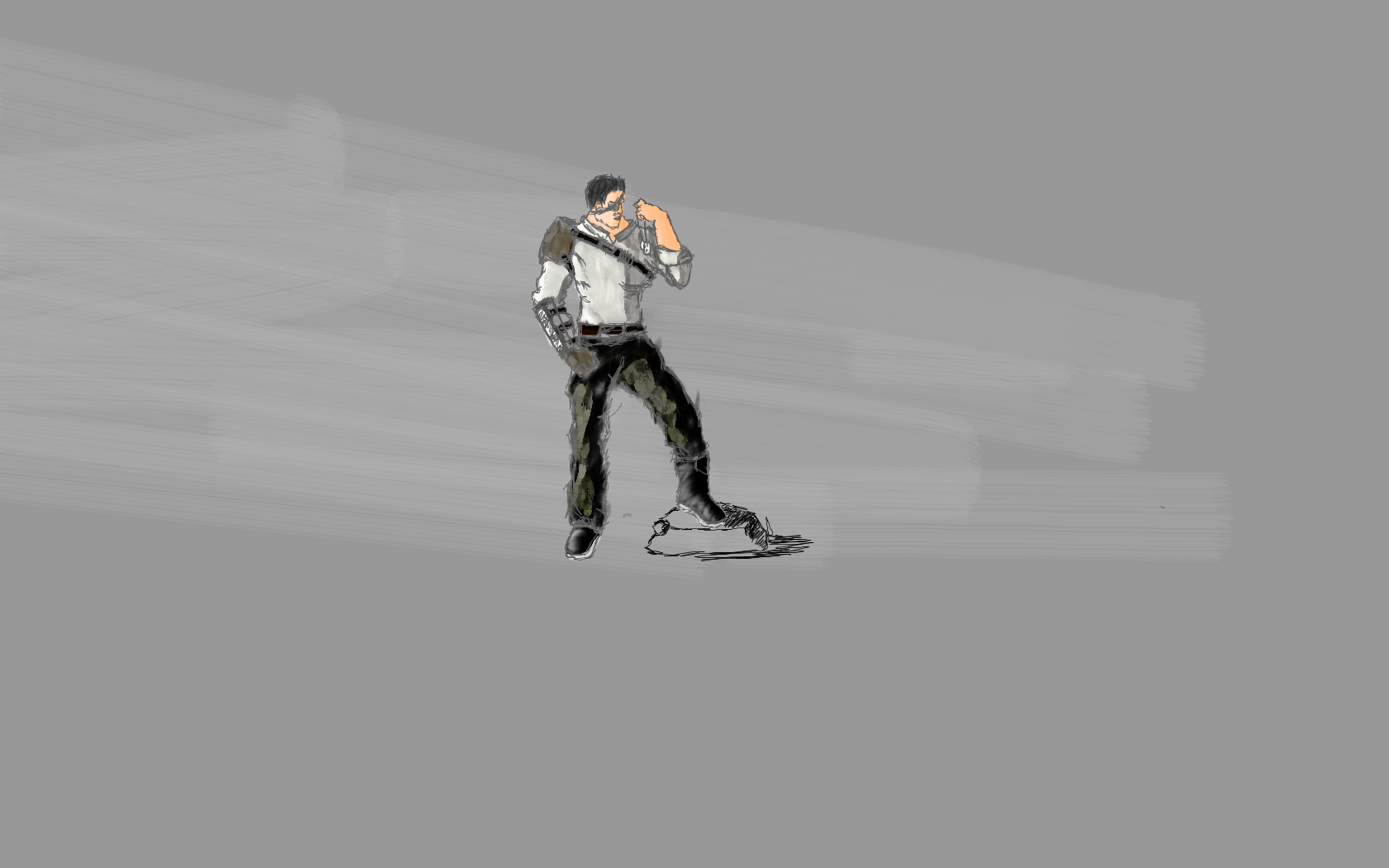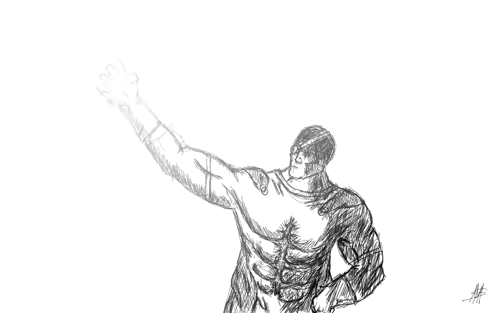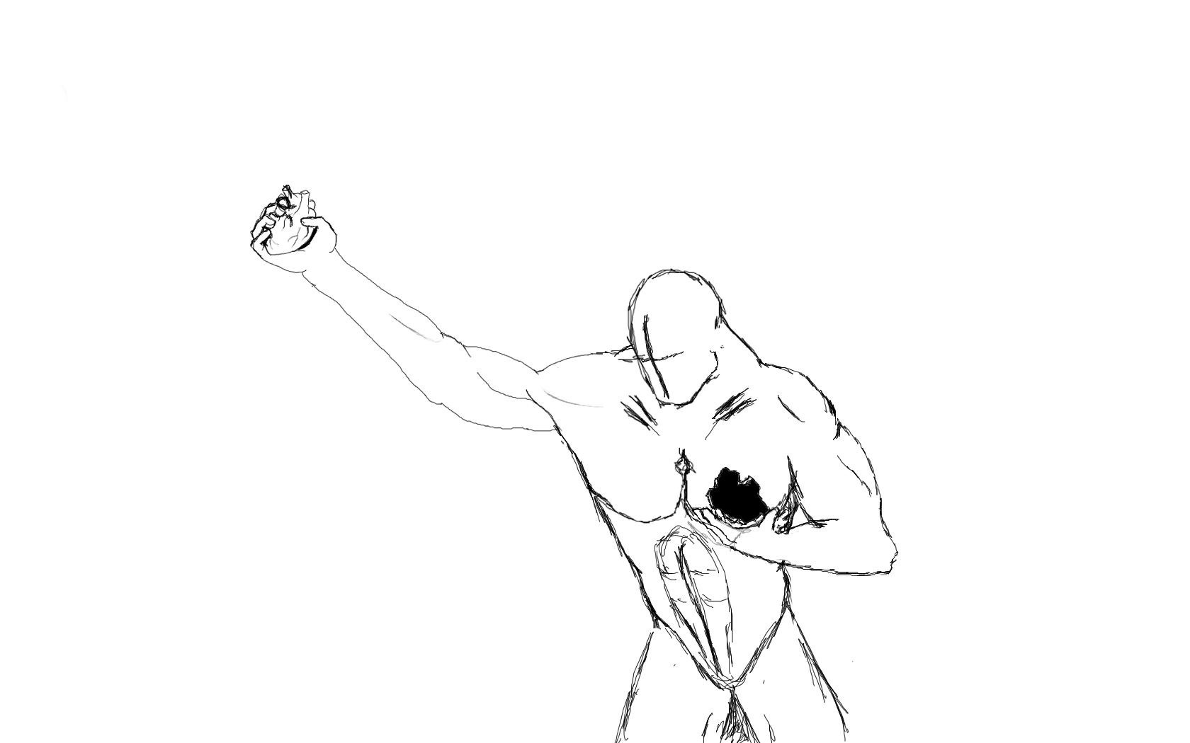 Hola Freeman, ¿Qué tal? El dibujo de concepto esta guapo y es muy expresivo, eso que ya tienes ganado, me gusta la mano con el corazón, pero el antebrazo se te ha quedado un poco largo. El hombro está un poco desencajado. Si tuviera el brazo extendido en línea recta al cuerpo le pasaría de largo la entrepierna y ese es justo el límite en el que debería ir acabando la mano. (es una referencia anatómica muy practica)