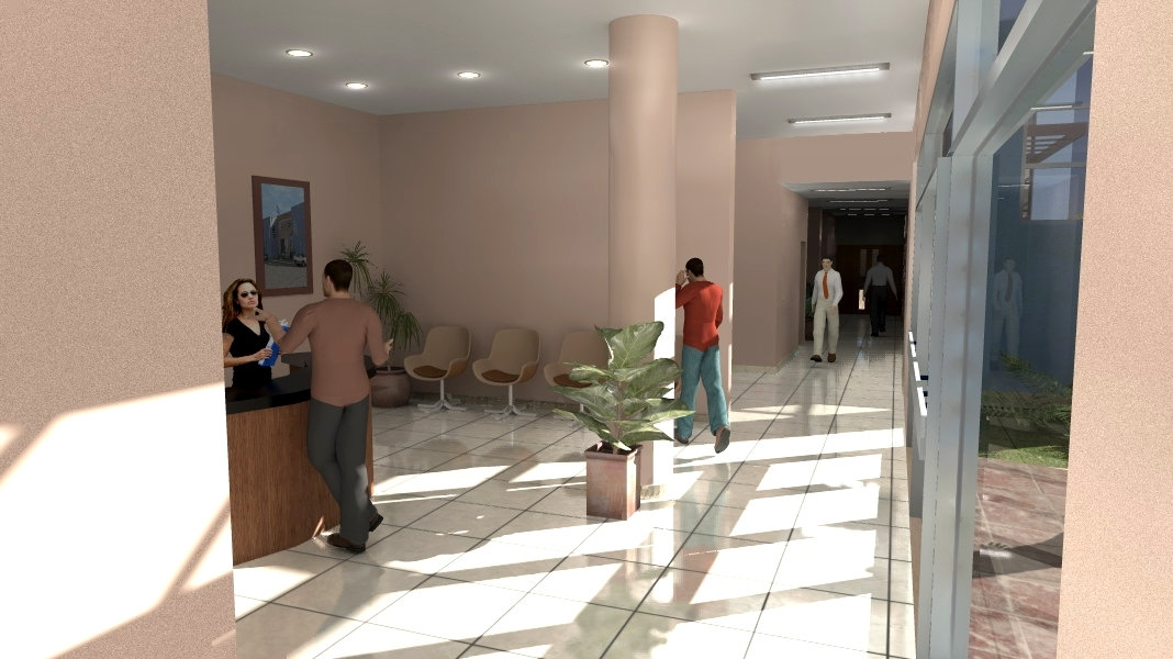 Renovacción y ampliación de un edificio público. Está modelado en Archicad, renderizado en Artlantis, mensaje en Corel Photo-Paint x4.
