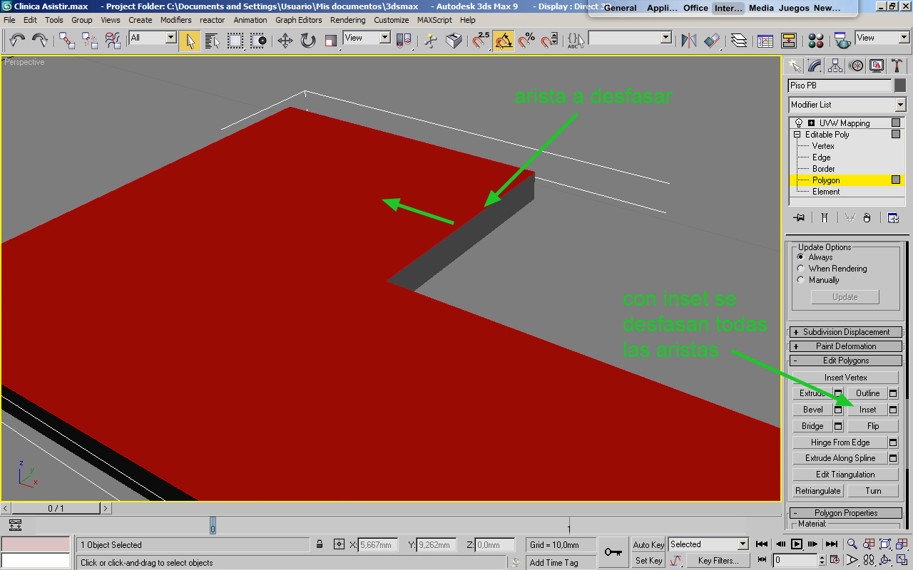 Necesito en un polígono (de una malla poligonal editable) hacer una equidistancia de una de sus aristas hacia adentro del polígono, por momentos pudo ser el inset, pero el problema de este comando es que me genera ese desfase en todas las aristas del polígono y yo solo necesito desfasar(equidistancia) una de las aristas. Espero haberme explicado. En breve subo imagen.