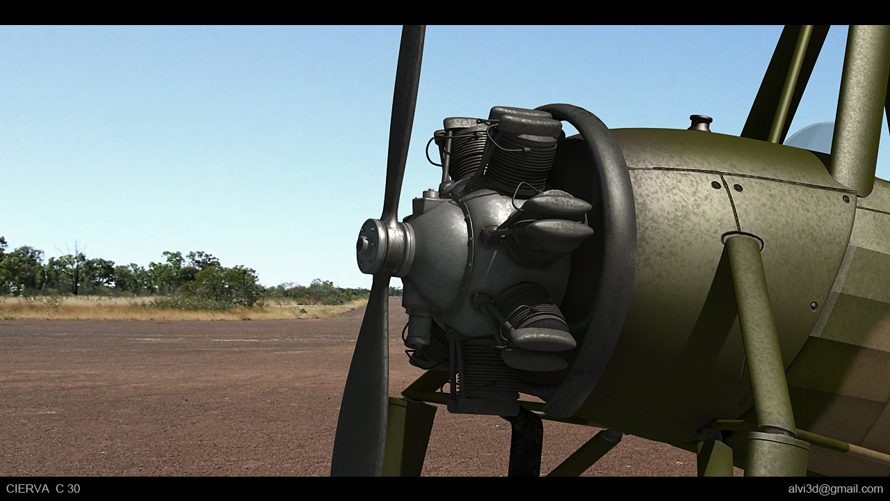 Modelo c30 (1935) del autogiro de Juan de la cierva. Dos versiones, una española de la aviación de la república española y otra de la Raf de la gran bretaña. Made in Cinema 4D. Saludos.