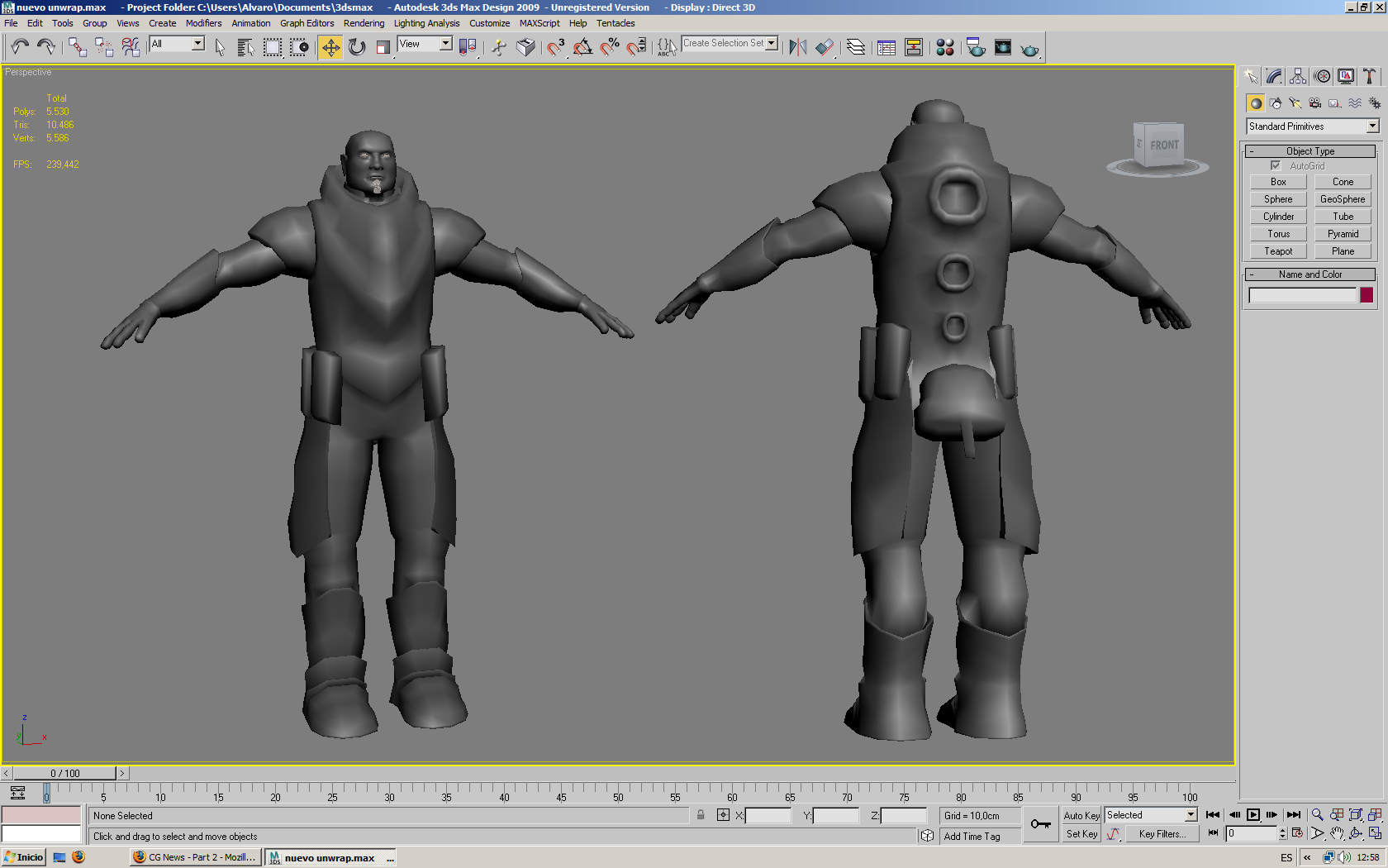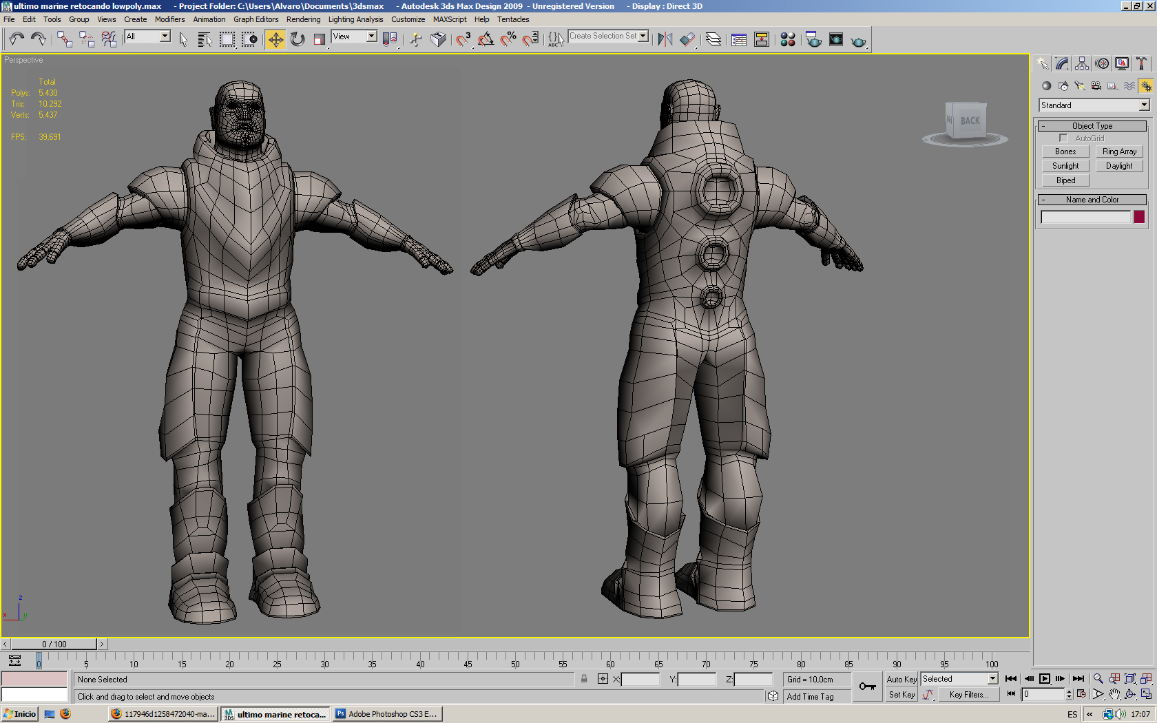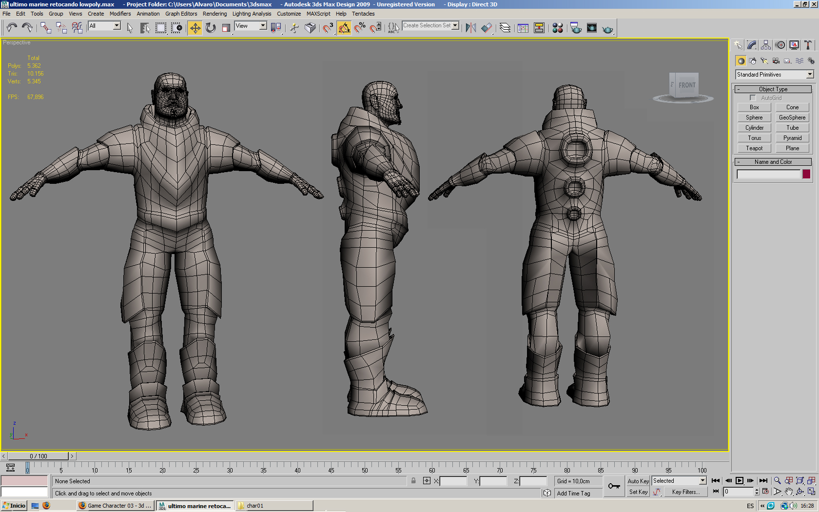 A ver qué os parece este retoque que he procesado, decirle a Magic que el modelado tiene 10.070 tris en la otra imagen lo que hice fue copiar el personaje en el visor de 3dsMax para poder enseñaros las perspectivas esta vez ya me las he arreglado con Adobe Photoshop.