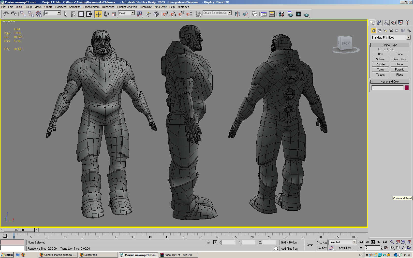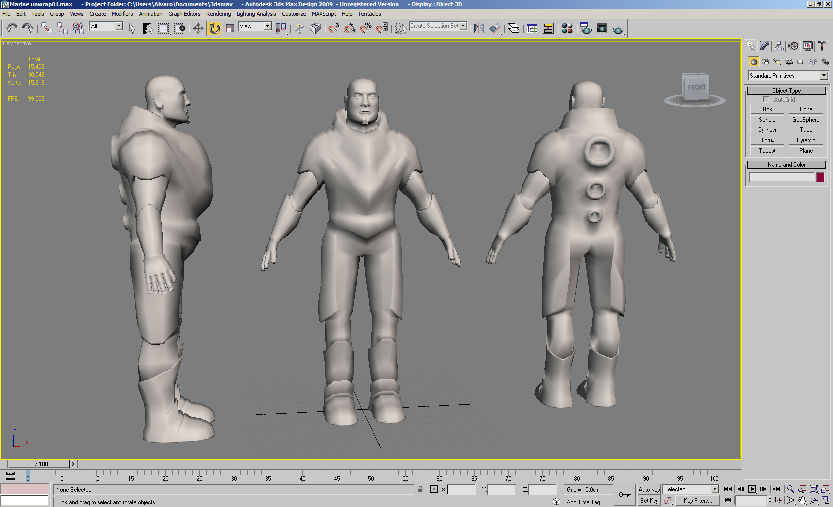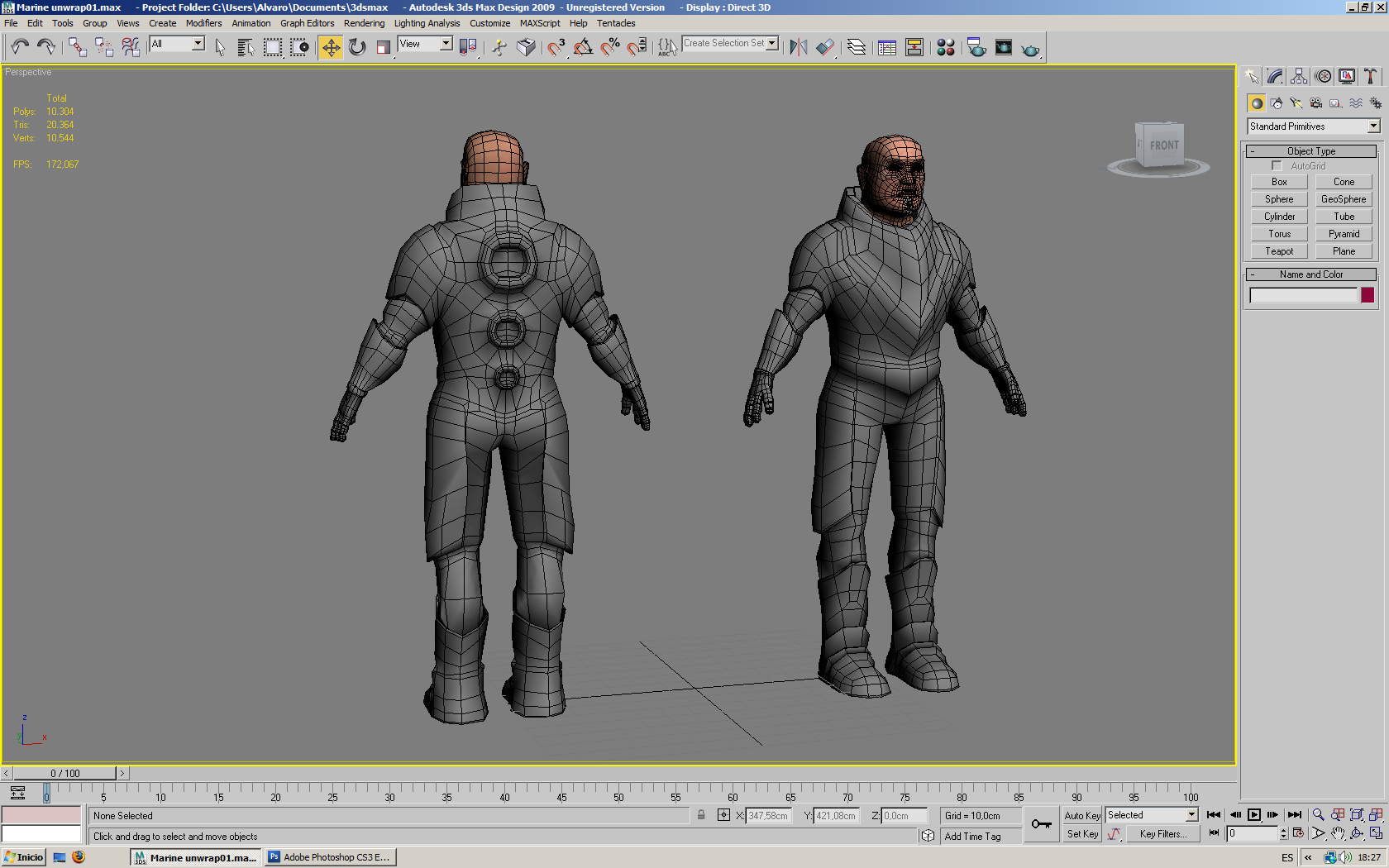 A ver qué os parece este retoque que he procesado, decirle a Magic que el modelado tiene 10.070 tris en la otra imagen lo que hice fue copiar el personaje en el visor de 3dsMax para poder enseñaros las perspectivas esta vez ya me las he arreglado con Adobe Photoshop.