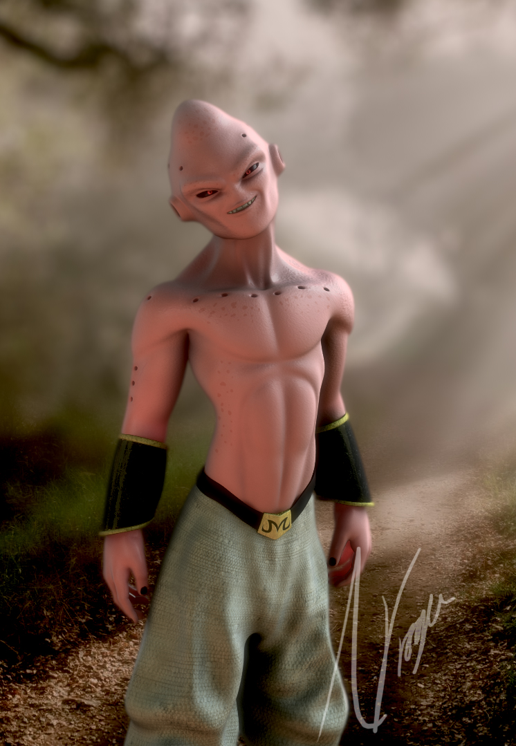 Muchas gracias por sus comentarios, en si el personaje que modele es el Kid bu el nombre no importa ya sea bu o bo, bu en inglés bo en español, lo que quise hacer es darle un toque un poco más realista por eso lo hice en 3d, si hubiera querido hacerlo exacto como la caricatura hubiera hecho una ilustración más estilisada, que claro son muy válidos sus puntos de vista, en lo personal a mi si me gustó la textura que le puse en el pantalón, de nuevo gracias por sus comentarios.