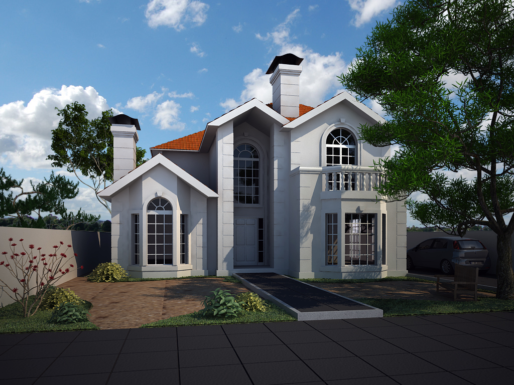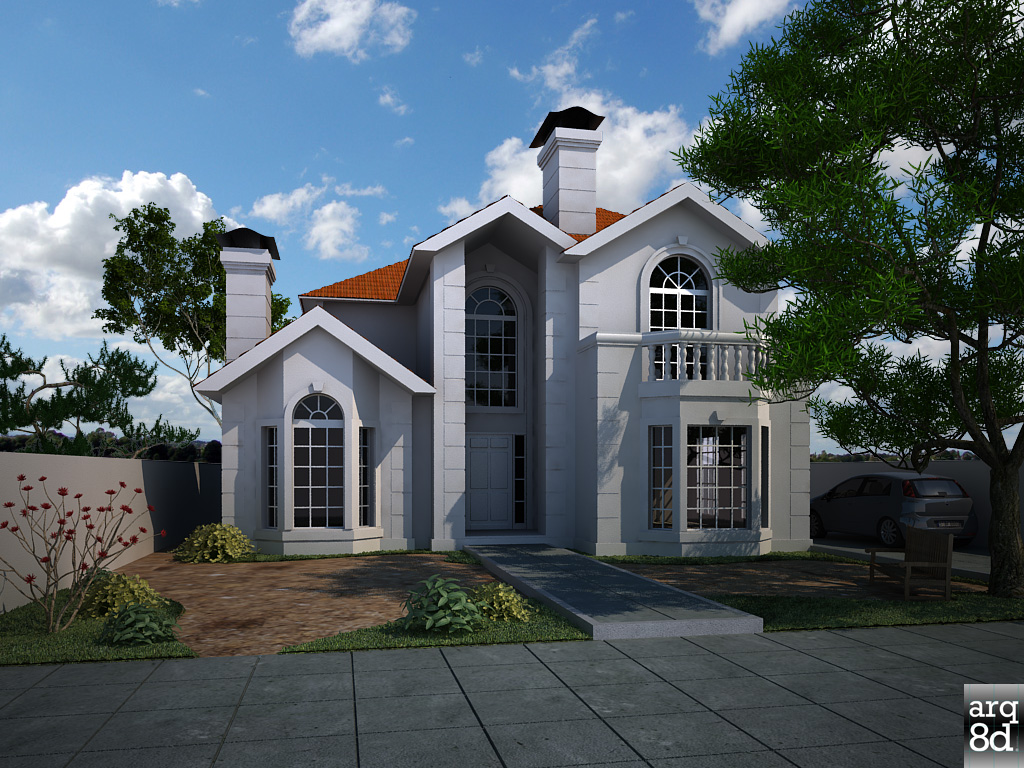 Bueno ahí le corregí la textura del terreno y de la vereda a ver qué les parece si mejoro un poco o no, si ven que hace falta algo más para que quede más realista me gustaría que me ayuden, no es un trabajo para presentar, lo saque de un plano que conseguí para practicar y tienes de muestra, no sé que texturas ponerle, por ejemplo, a las paredes le puse un blanco liso con un Bump y a las ventanas un material aluminio igual que las texturas del techo y la vereda, para mí quedan bien, pero me gustaría saber sus opiniones, saludos.