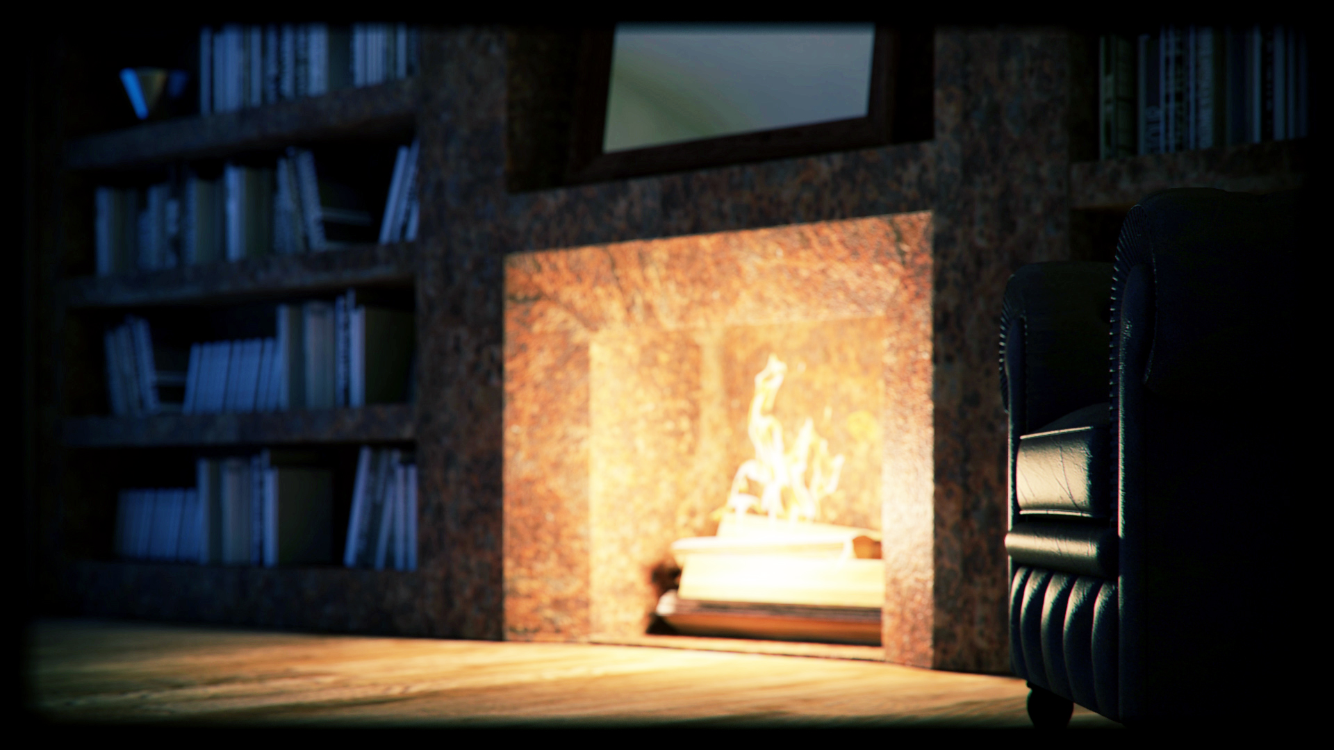 1º ilumina con una escena en gris y piensa que cada tipo de luz sirve para buscar un efecto diferente, juega con la atenuación, mapas de proyección y las sombras deberían de ser con bordes muy dispersos, ajusta el mármol de la chimenea, separa la estructura de la chimenea de la estantería ganaras profundidad, los libro demasiado iguales, con esto tienes para rato, espero que acabe en buen puerto esta imagen.