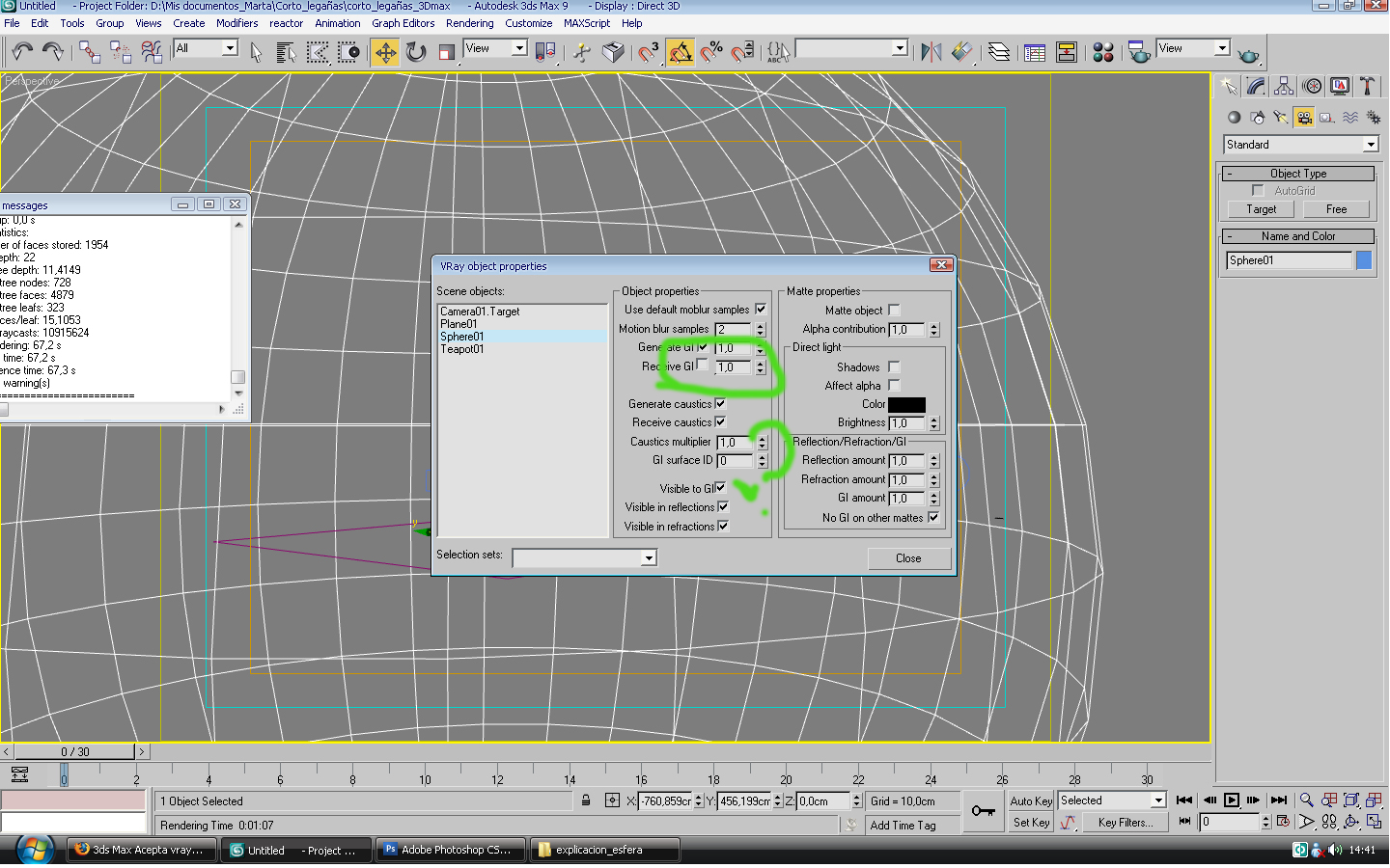 Por cierto, también probé lo de la esfera hueca y meter dentro la escena, por lo menos a mi el tiro me salió por la culata, al final que hice fue poner planos con fotografías de edificios y cosas así para que se reflejara en un coche, esto lo hice por que en aquella época no sabía lo que era la iluminación por HDRI.