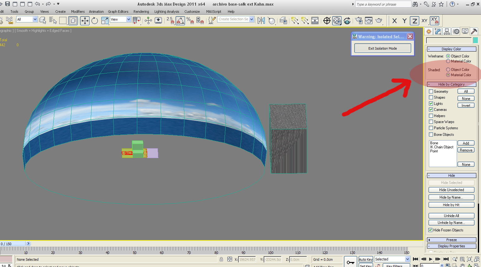 Al lado derecho del icono de cubo azul hay una flecha negra que apunta hacia arriba. Presionala, con eso subirás un nivel (de mapa a material).