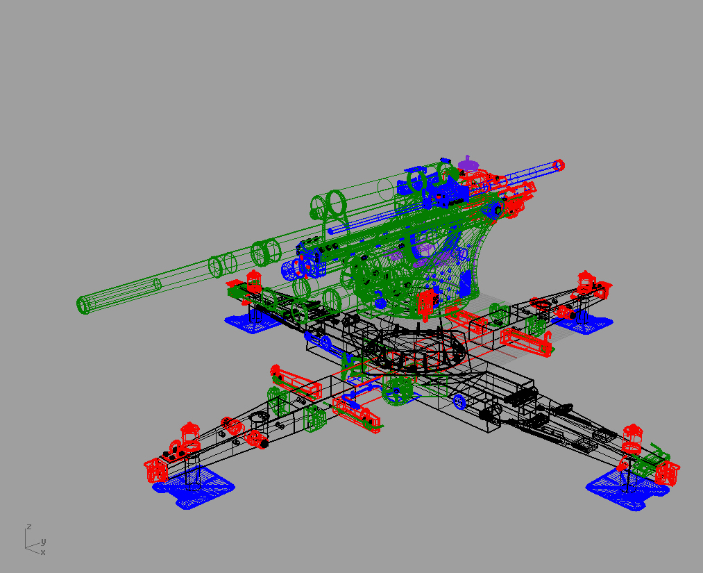 Incorporaba un circuito eléctrico de disparo, para aquellos casos en los que era utilizado en operación contra blancos terrestres. Su máximo alcance vertical era de 15.000mts y un techo efectivo de 10.000mts. En empleo terrestre disparaba un proyectil de 10.4kg a un máximo de 19.700mts.