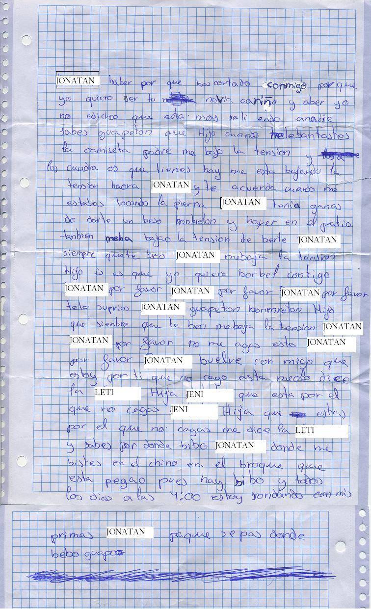 Me han mandado esto en un correo y no tiene desperdicio alguno (aunque toda la carta en sí es un desperdicio). Se trata de una carta de amor de un angelito de 12 años a su amado de clase.