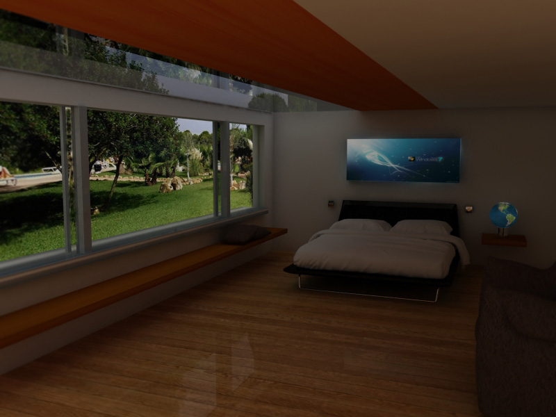 Esa parte del techo que refleja, no la entiendo, si es un espejo está un poco raro. La cabecere de la pared entiendo que es como esas cajas de luz publicitarias de vinil ¿no?