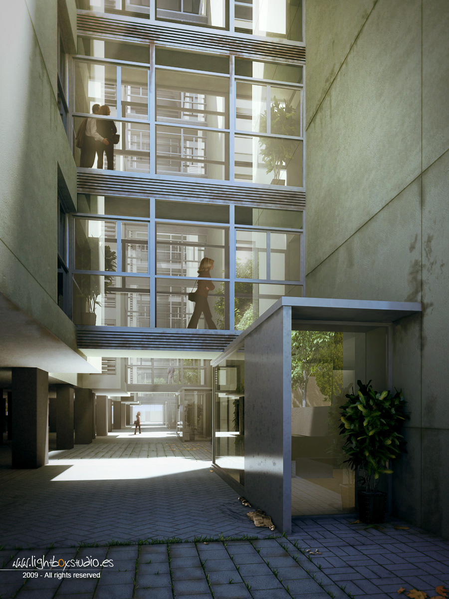 El trabajo está bastante bien, es cierto lo que comenta Luke, has perdido un poco de definición en la imagen a la hora de retocarla, pero por el resto me gusta bastante, se sale de la infoarquitectura tradicional, todo el mundo tiende a hacer edificios perfectos, pues que vallan a mi casa, me lo acaban de entregar y hay manchas en la fachada para aburrir.