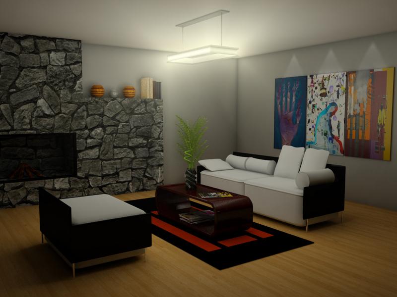 Me gusta más la 1era imagen, aunque la chimenea parece plana, no se muestra bien la profundidad, en la segunda imagen la iluminación de los cuadros sale de la nada? Ese haz son de dicroicos? La última imagen tiene su encanto se ve bien.