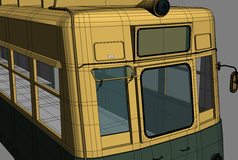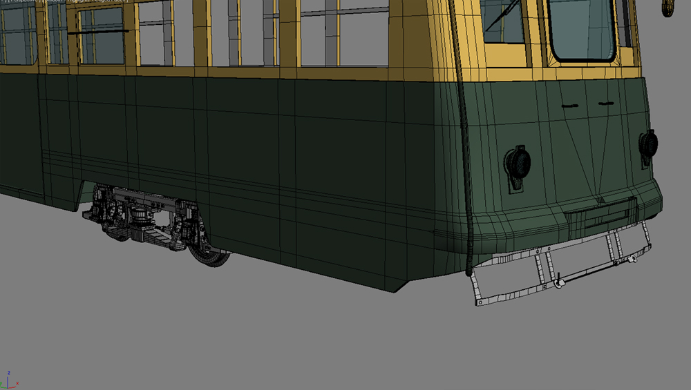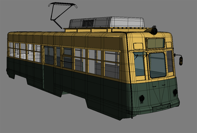 Pues el tranvía te está quedando bastante bien, yo curiosamente hemos elegido una escena parecida para reel, si necesitas imágenes de referencia dime por que tengo muchas, bueno ya iremos comentando si quieres, me falta acabar un edificio, hacer el Matte Painting del final de la calle e iré subiendo cosas en breve.