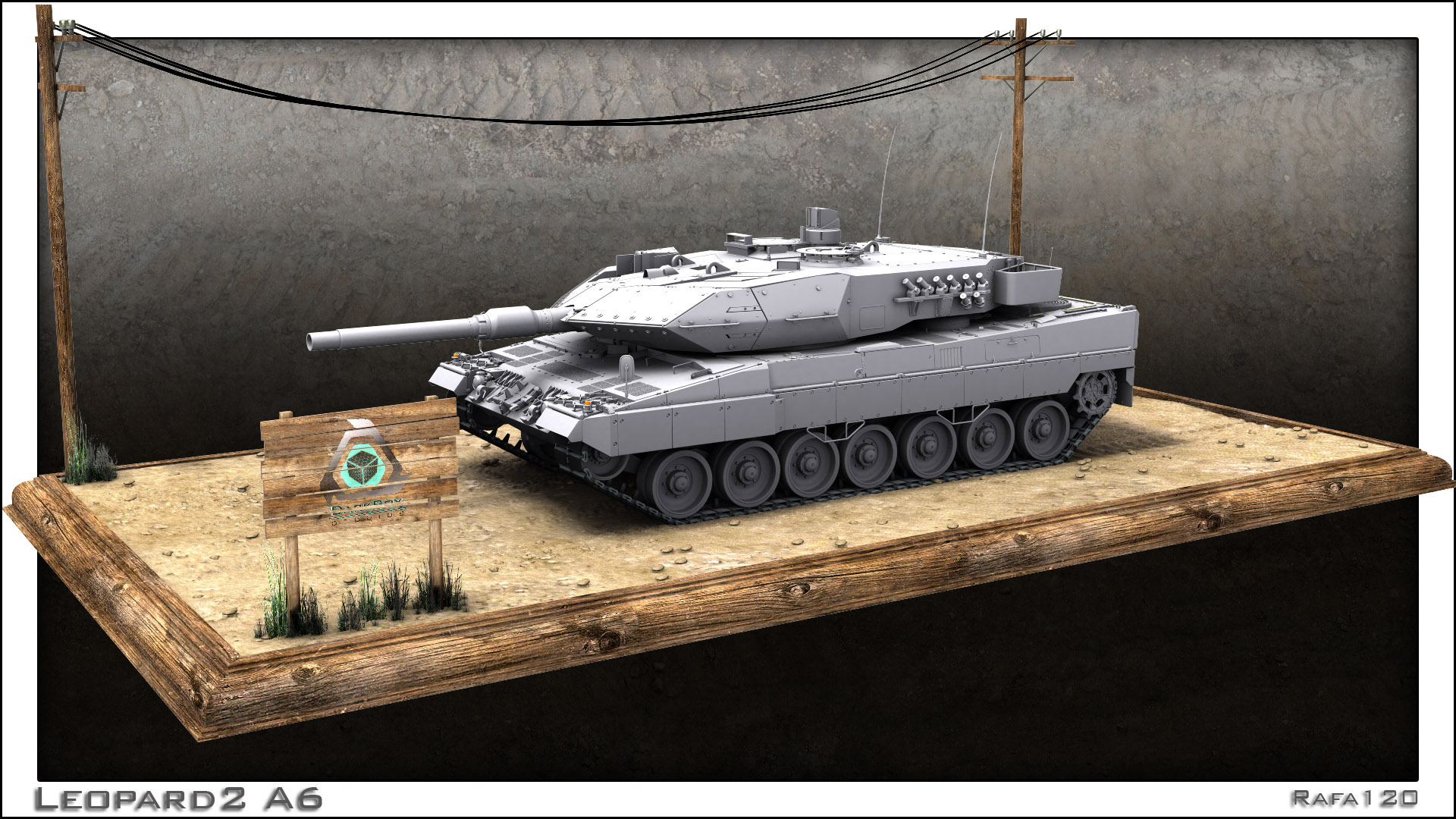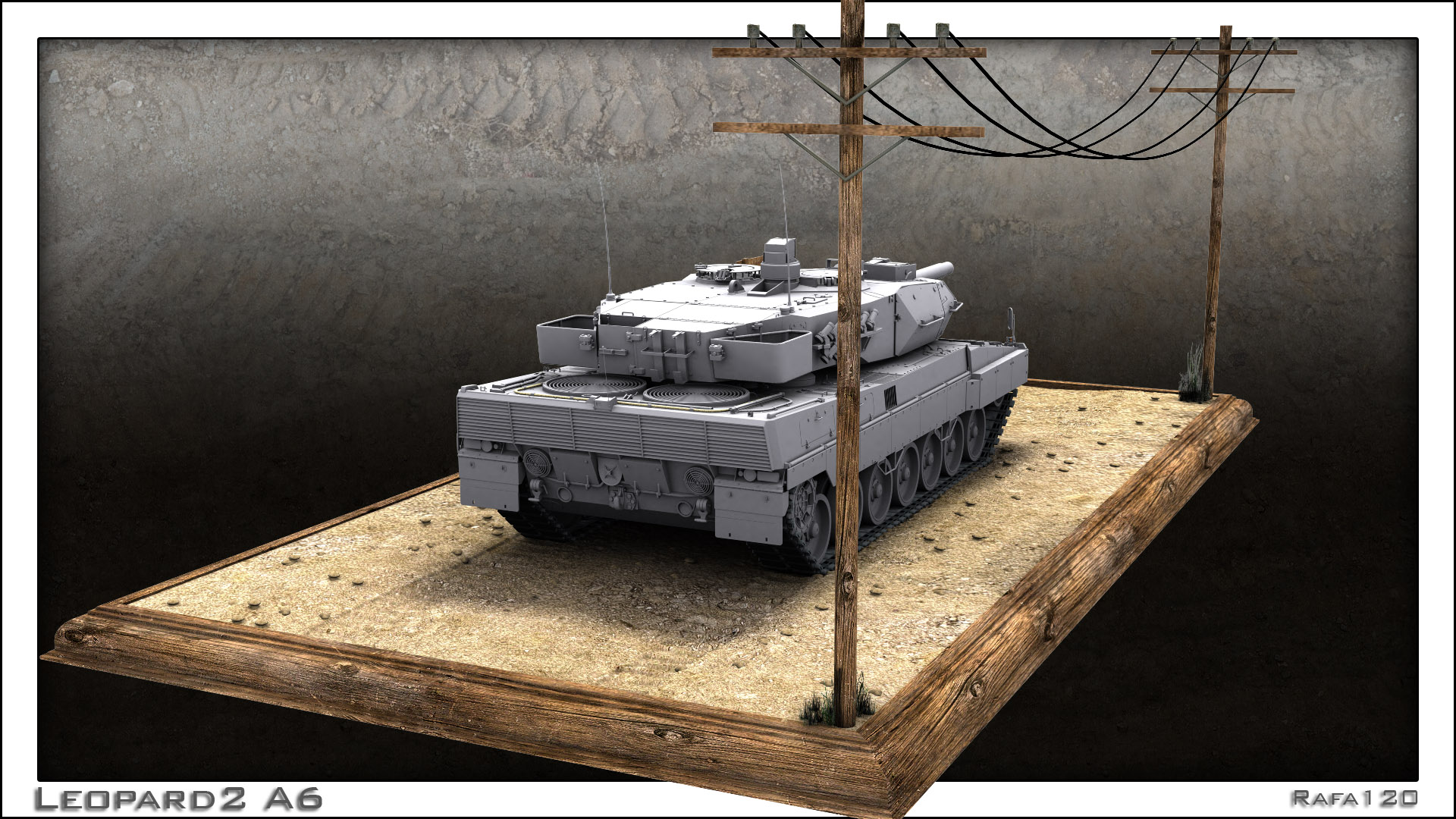 Pues aquí os traigo por fin el Leopard terminado. Veréis, como ya comenté al principio del hilo en trabajos en proceso, en este modelo solo me he concentrado en el modelado y en ser lo más fiel posible al modelo real, por ello no le he puesto texturas. Pero claro, poner un render limpio del modelo no tenía mucha gracia, así que, le he hecho un escenario tipo diorama para darle algo más de interés visual a la imagen. Bueno no me enrollo más, ahí tenéis las imágenes, espero que os guste. (3dsMax+Scanline+cs).
