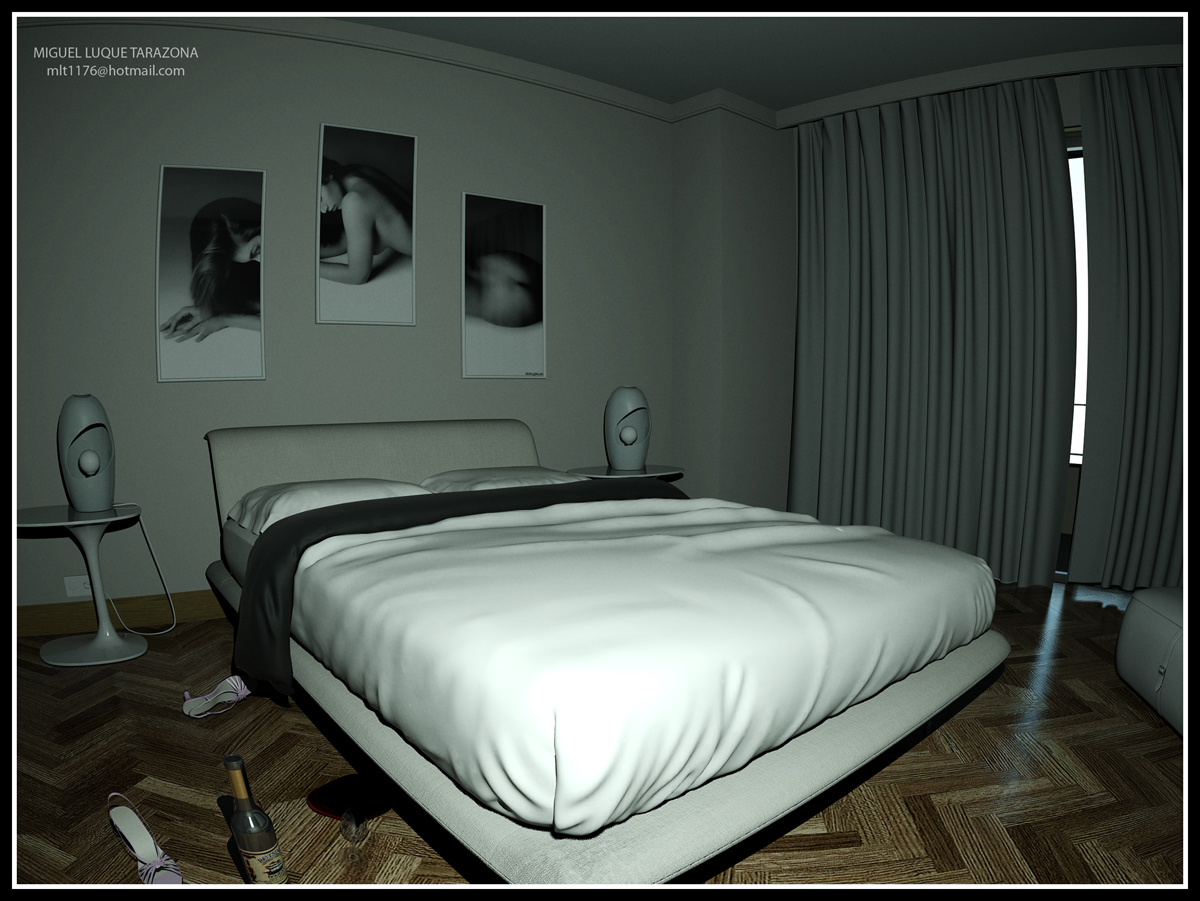 Hermoso se nota que no has dejado nada al azar, una cosa que si te digo (y aunque ya sé que lo has hecho a posta, lo mismo me parece sincero hacerlo notar) es tu lámpara sobre la cámara me parece desproporcionada sobre todo por el desarrollo en vertical del local.