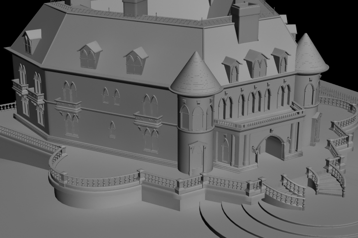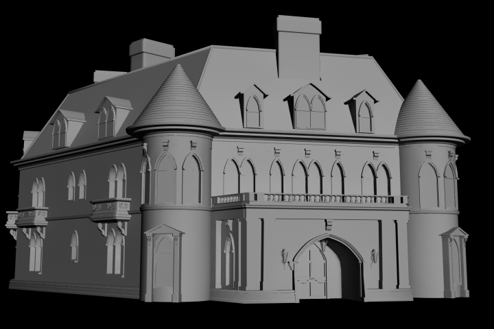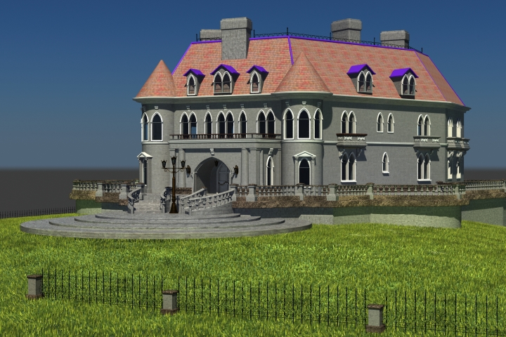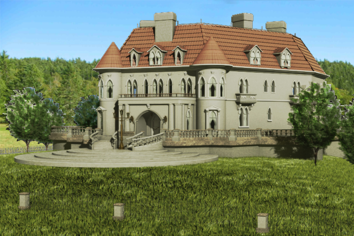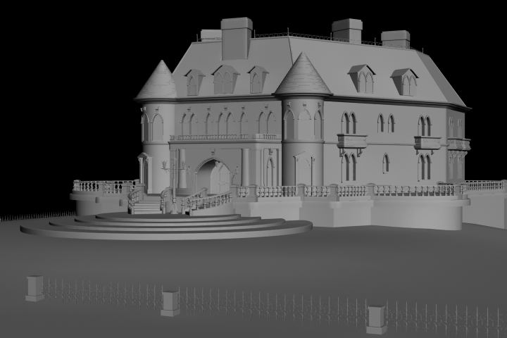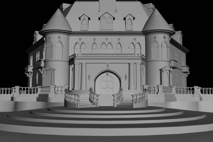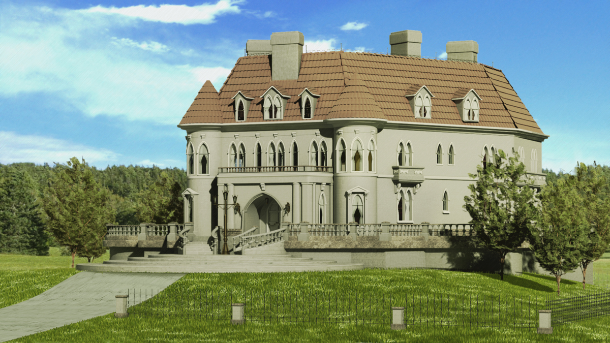 Hola, gracias a todos x comentar, ahora estoy adjuntando un render casi final de la mansion, voy a corregir la dirección de la luz que la está aplanando un poco.