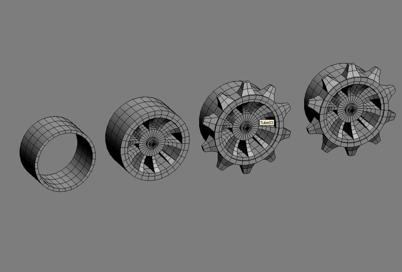 Lo primero contar los dientes que lleva la original y partir de un cilindro o tubo con una cantidad de lados proporcional. Si tiene 15 dientes, pues de un cilindro de 30 lados o de 45, iría bien. Luego empiezas a extruir y a mover vértices para dar la forma a los dientes y después a los radios. Luego metes los tornillos aparte y a suvizar.