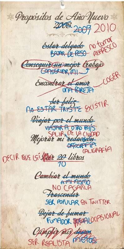 Lo de los propósitos es absurdo. Sólo crean ansiedad y frustración por no cumplirlos. Las cosas o se hacen o no se hacen. Mejor no proponerse nada, y un día sin más, salen.