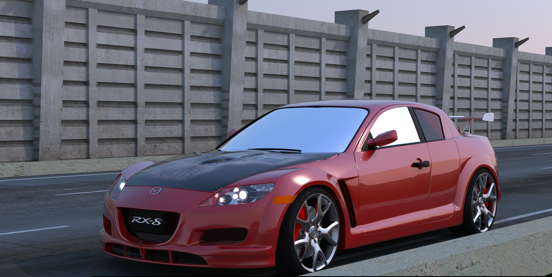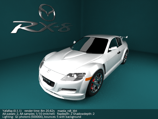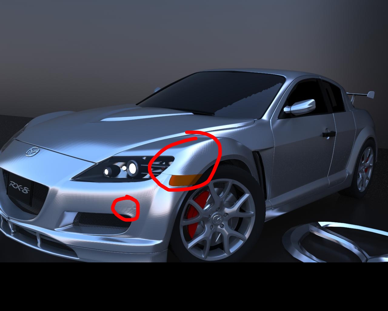 Lo que pasa es que estoy suavisando el modelo del Mazda con un modificador llamado Subsurf y le doy un nivel de 3 de subdivision en el render y pasa lo siguiente: