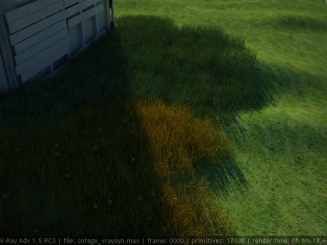 Una imagen del césped con Vray Fur.