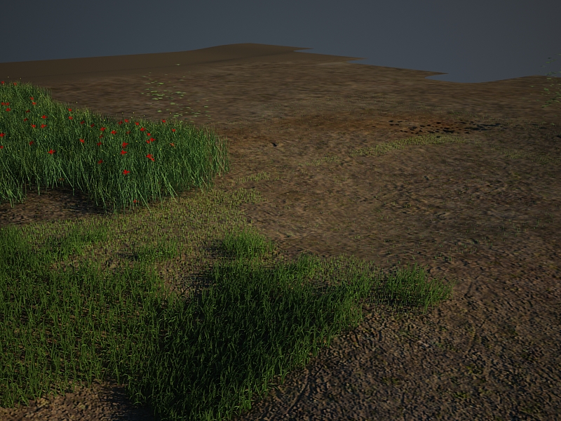 Bueno hoy me he estado peleando con scatter y empiezo a cogerle el truco (cuanto más hundo la pata en este mundo más feliz soy). Esta aún en pañales el acabado final de la hierba, pero será parecido a la imagen. (al suelo le he quitado el desplazamiento en la primera imagen). Por cierto, con el Vray Sun tengo que tocar muchos parámetros para la intensidad de la luz (Vray Sun, Vray Sky, Vray Physical Camera) los primary y secondary bounces del CG engine afecta poco a la escena. ¿tengo que seguir ajustando los niveles con estos parámetros gracias.