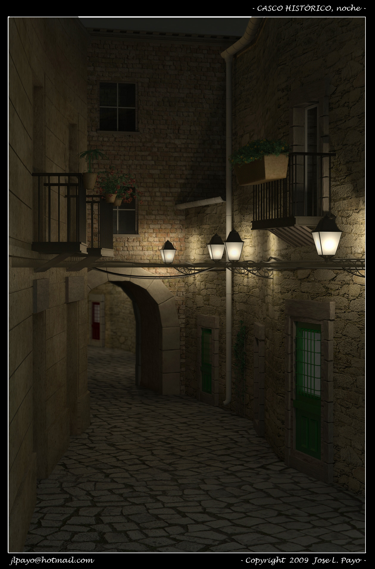 Bien, en la segunda imagen, fíjate que está muy oscuro, teniendo tantos faroles prendidos, y se observa, que las luces sólo se centran a su mínimo alrededor.