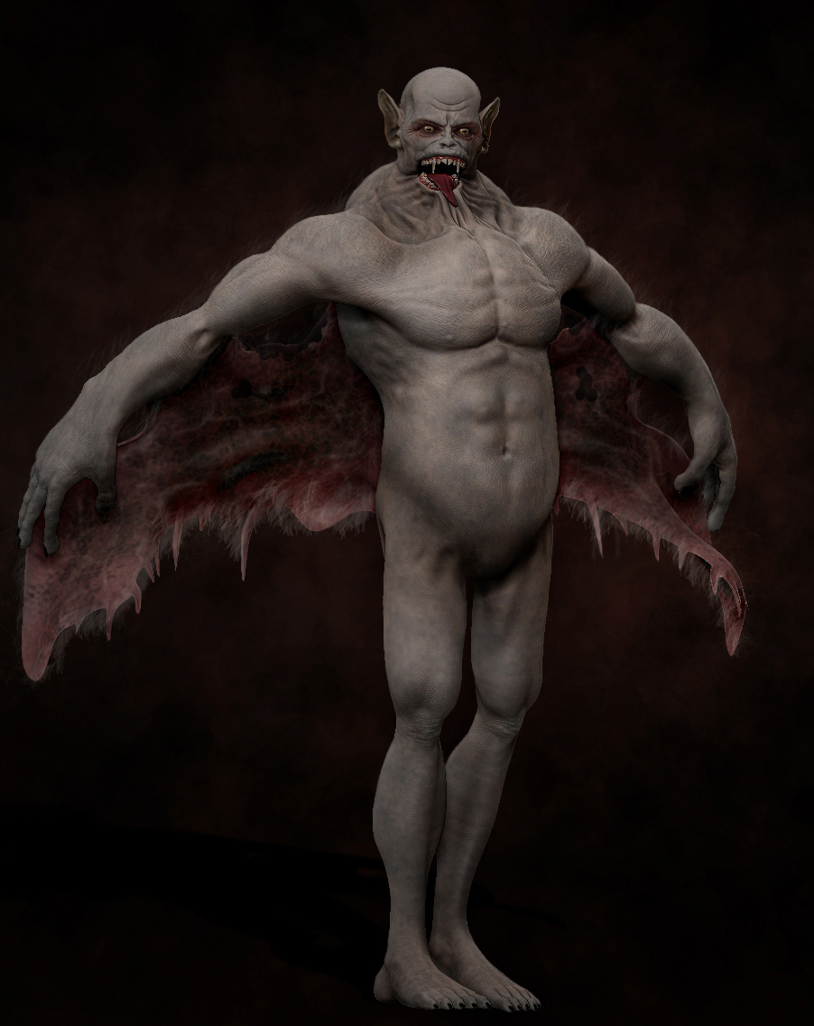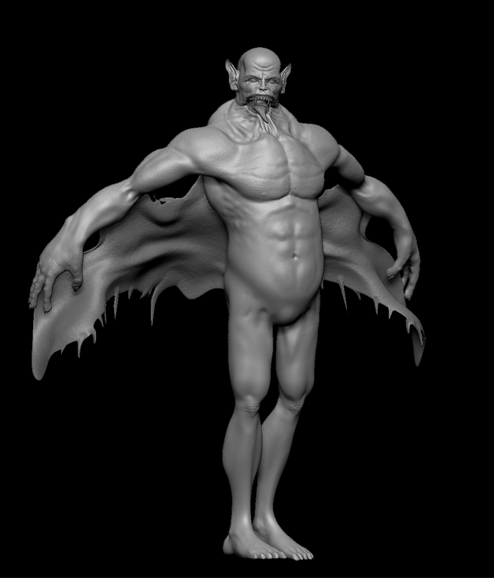 Hola a todos, este personaje nació después de ver van Helsing que pasaron por cable la semana pasada, así que, me dieron ganas de hacer una criatura (Drácula), quería hacerlo algo diferente, así que, decidí no ponerle mandíbula y que los dientes salgan directo de la zona del cuello o pecho, sobre la anatomía pues quería hacer lo menos humano posible así que, por eso las piernas flacas y un poco de barriga, sobre las alas si no quede del todo satisfecho, pero, lo di por terminado así, espero leer sus comentarios y críticas, un saludo a todos.
