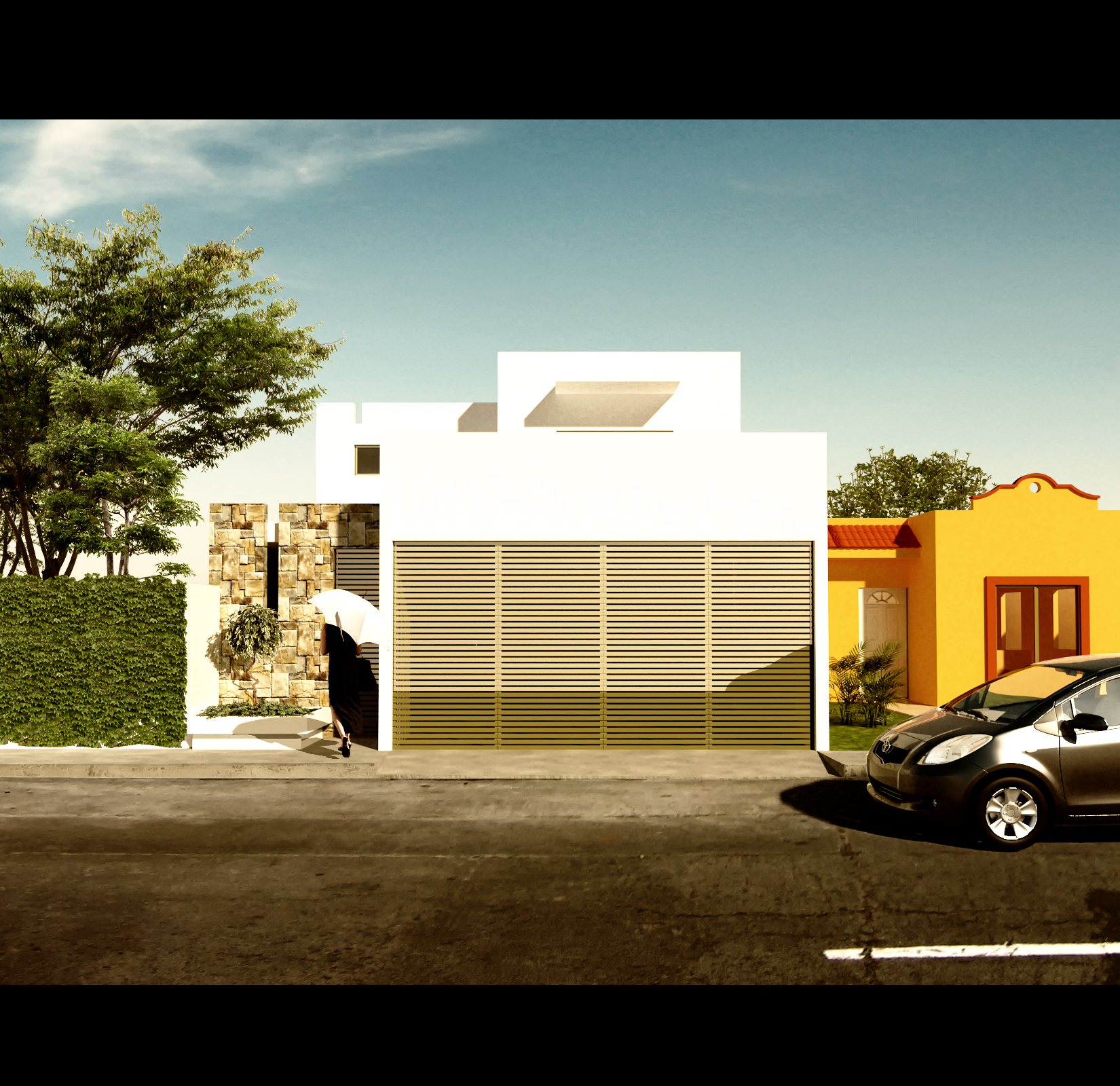 Para mí que otro punto de vista habría dicho más sobre el proyecto. Además, me parece que está un poco quemada la imagen y se pierden las formas del edficio. Por último, un poco de material (madera?) en la puerta del garaje no estaría de más.