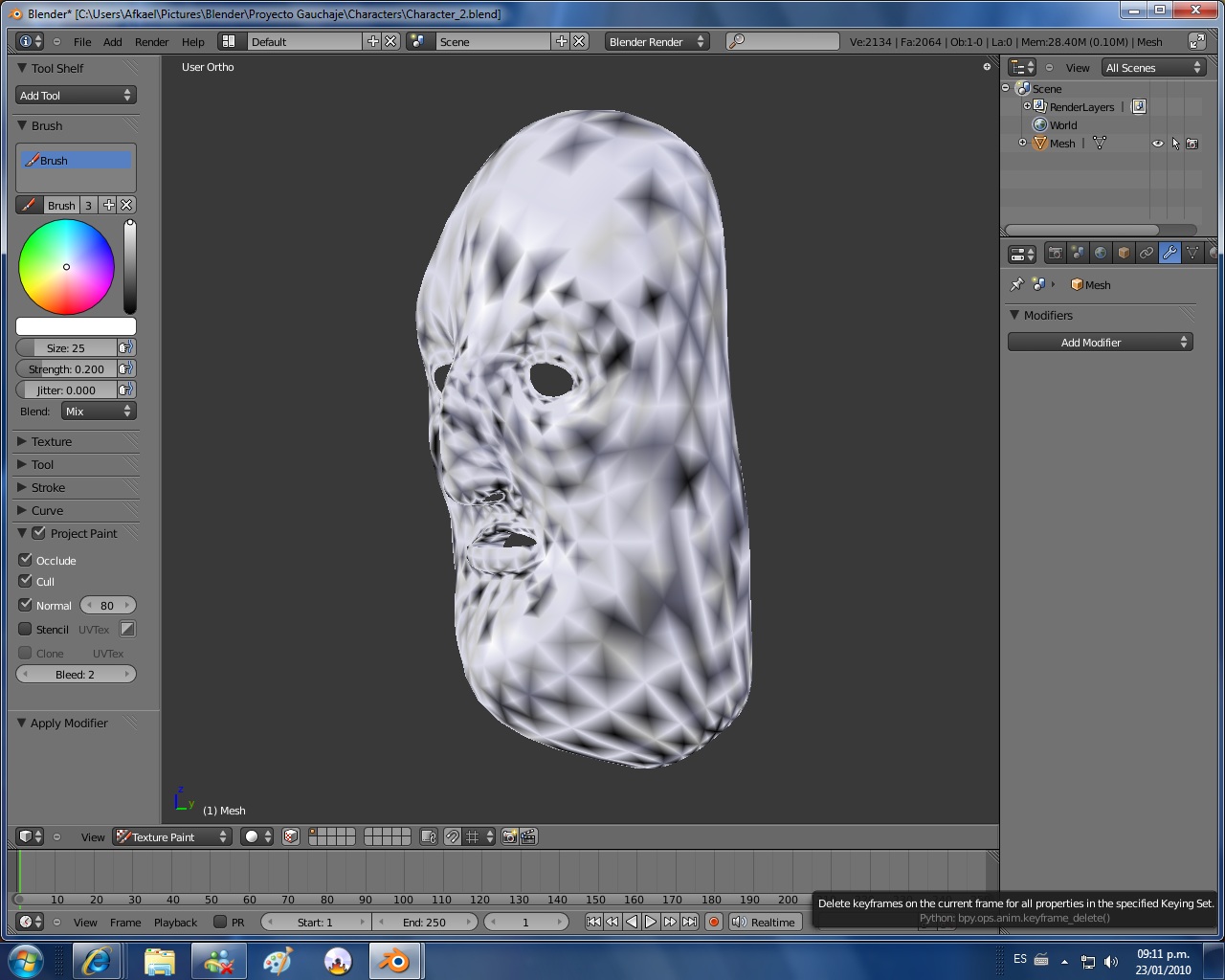 Yo ya tengo modelado un personaje y al intentar esculpirlo se me presentan varios problemas y dudas.