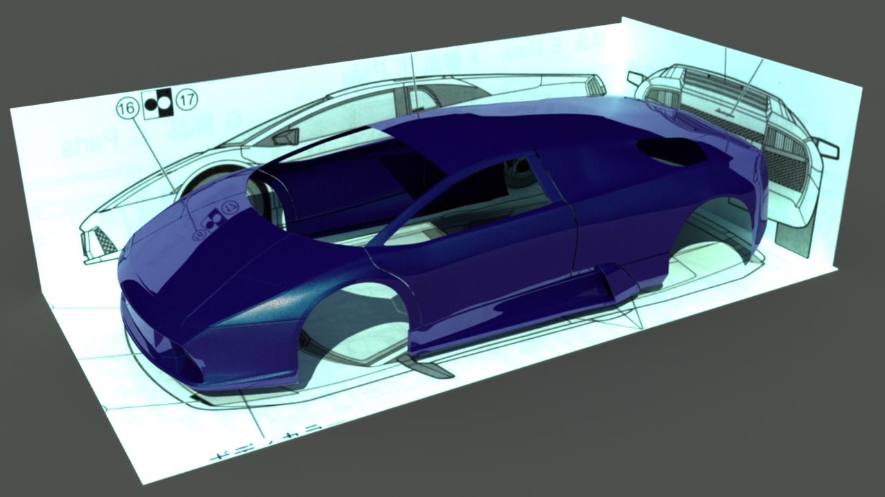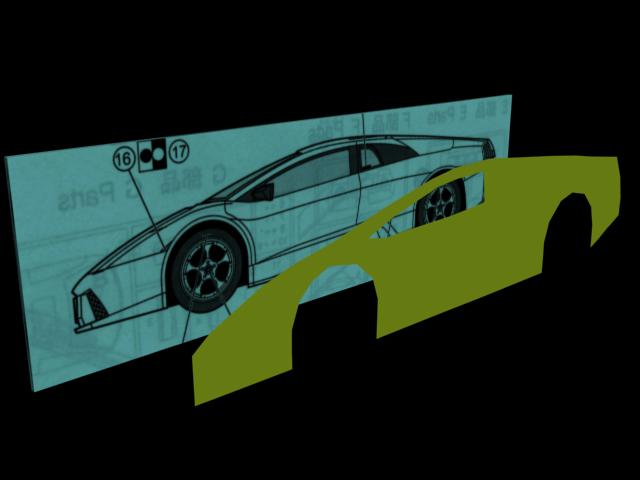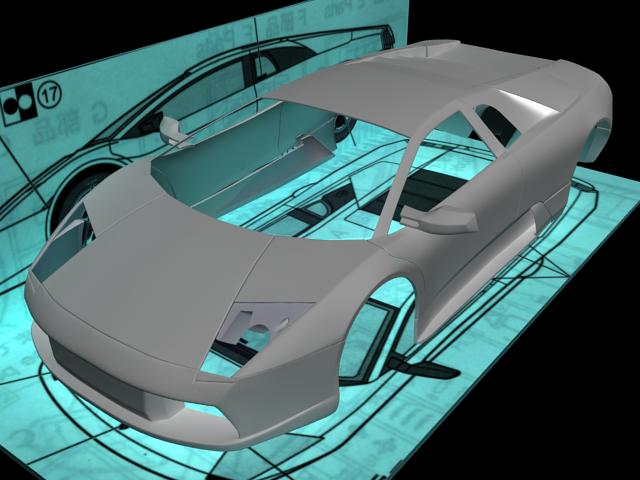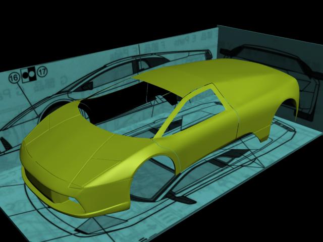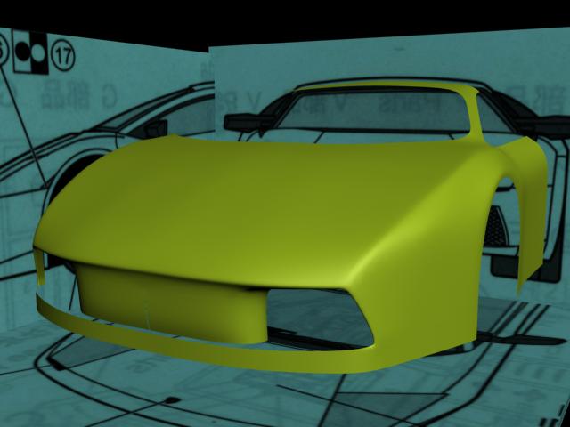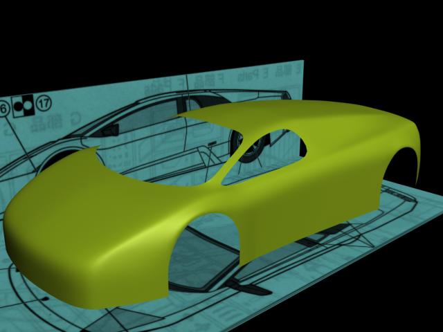Todavía queda trabajo, ya tengo la parte delantera más o menos siempre con algunos retoques, la puerta y el alerón lateral, una cosa que me he fijado es que en los demás modelos la gente hace el lateral con esquina y en realidad es curvado, así que, yo lo dejare como esta, próxima parte a modelar el posterior del coche.