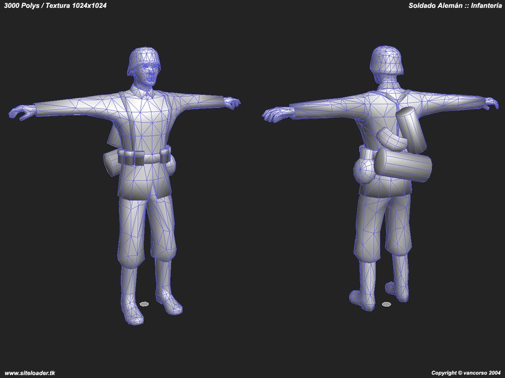 Para ser soldado alemán no tiene mucha cara de mala hostia. Está genial, ¿para qué juego o proyecto es? Me cuesta creerme que sólo tiene 3000 polys incluso viendo la malla.