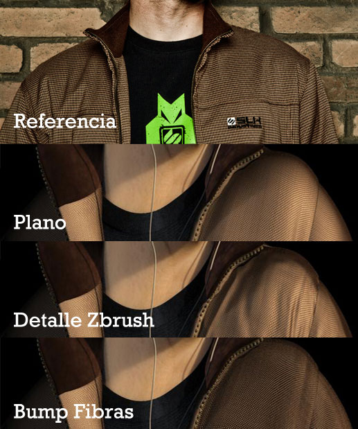 Ahora mismo estoy lidiando con la ropa, pues quiero combinar dos bumps. Uno es el procedural que crean las fibras y el otro las arrugas que he generado en ZBrush. ¿alguien sabe cómo puedo conseguir esto? Tengo entendido que necesitaría un operador tipo overlay y no multiply para combinar ambos nodos y no perder detalle de ninguno, pero ahora mismo no sé qué hacer. He adjuntado imágenes de los resultados que quiero combinar.